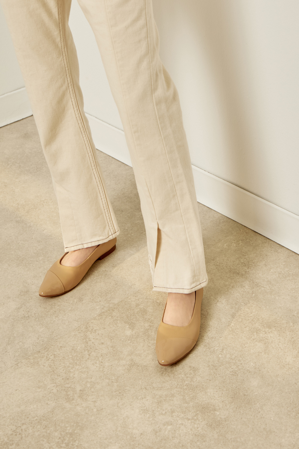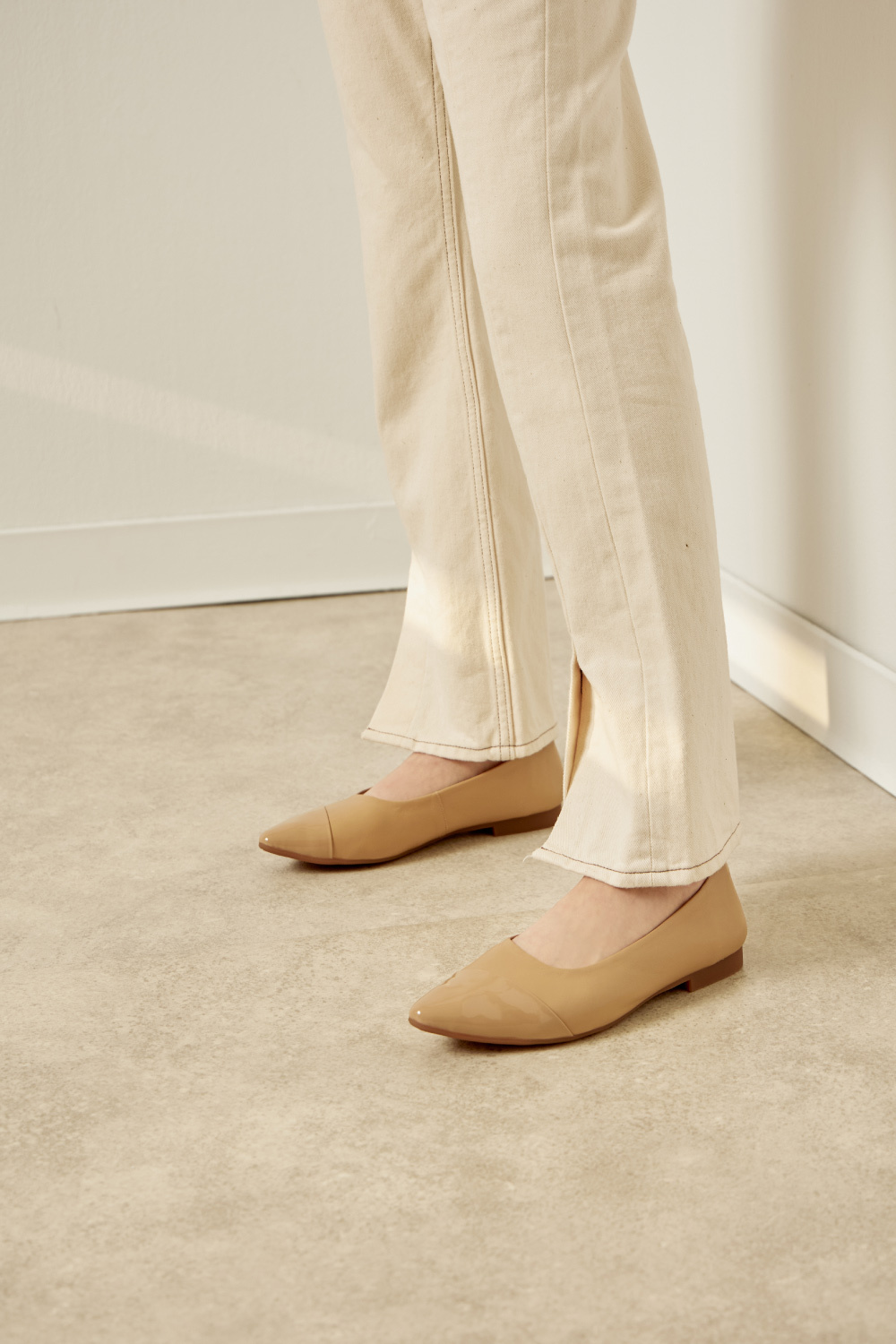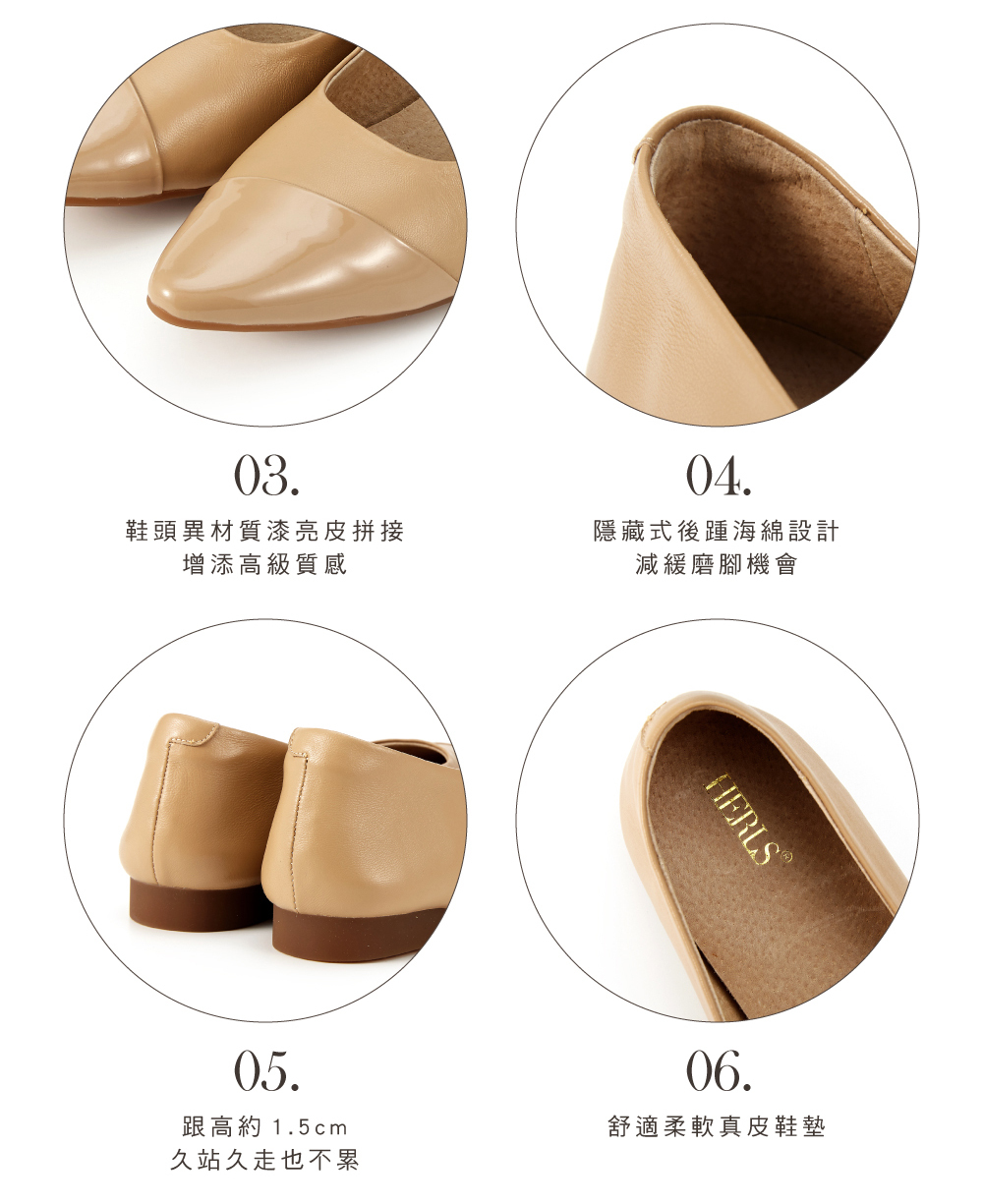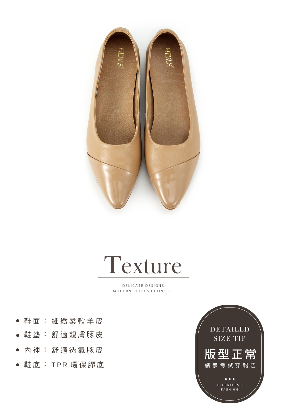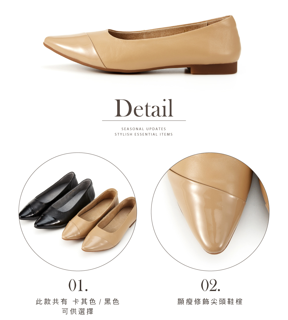 │鞋頭異材質漆亮皮拼接,增添高級質感