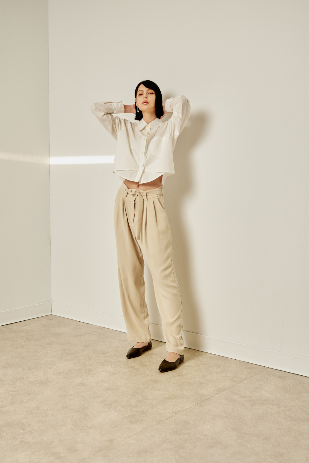 │側面V型裁片拼接,悄悄修飾腿部線條