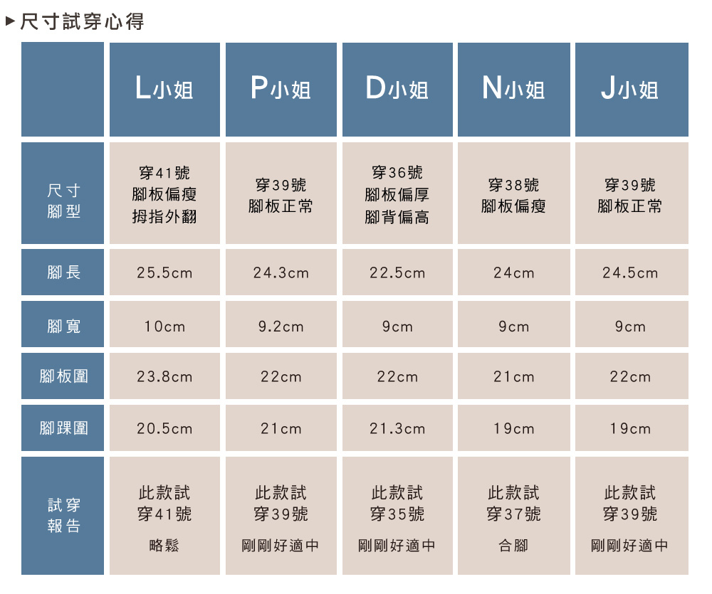 ※ 此鞋款版型正常,可依平常穿著尺寸挑選;若腳板偏瘦,建議挑選小一號較合適。
