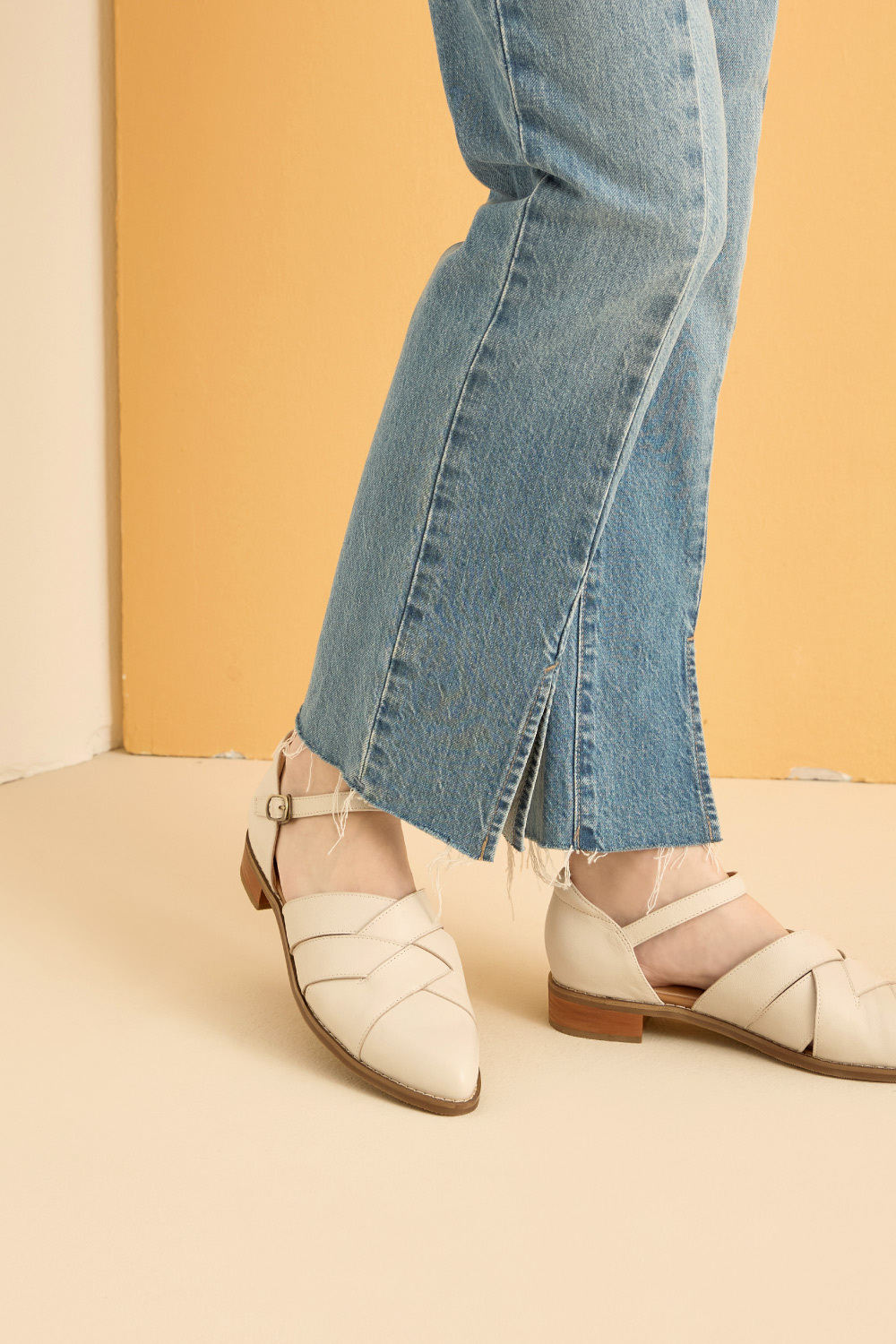│鞋面手工質感編織造型X纖細修長V口剪裁