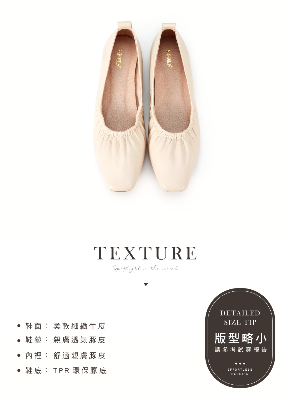 ※ 鞋面抓皺設計為師傅手工製成,每雙鞋/左右腳抓皺略有不同,不屬瑕疵範圍,請以實品為主
