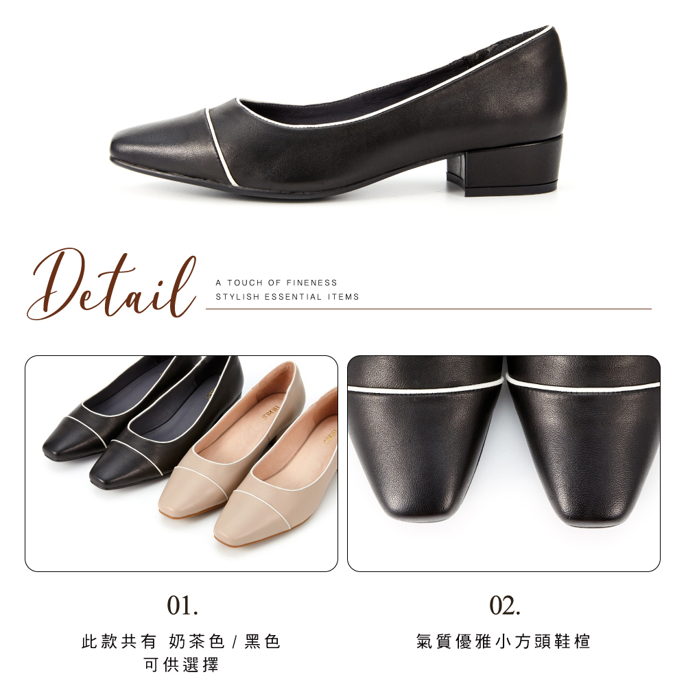 │同材質面料粗跟,跟高約3.2cm