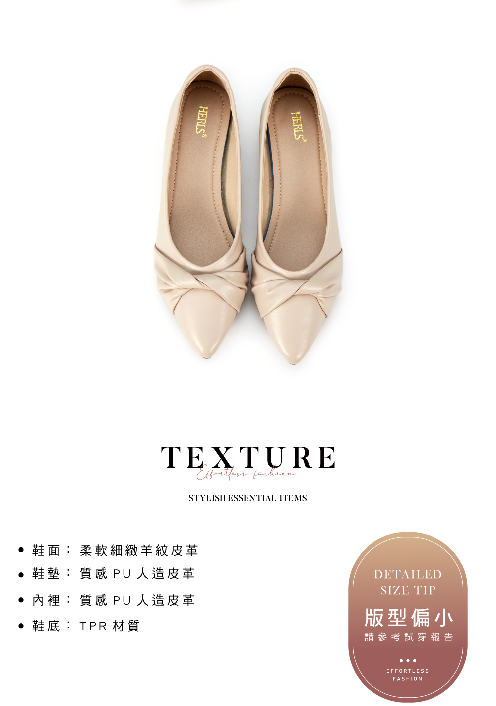 ※ 試穿時切勿硬塞、踮腳或拗折腳背,若造成無法復原之皺褶,恕無法接受退/換貨