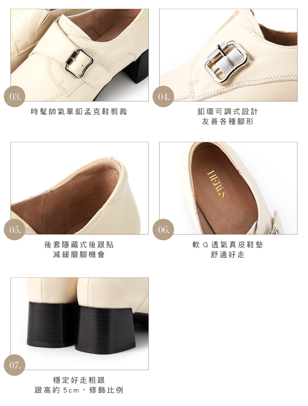 │穩定好走粗跟,跟高約5cm,修飾比例