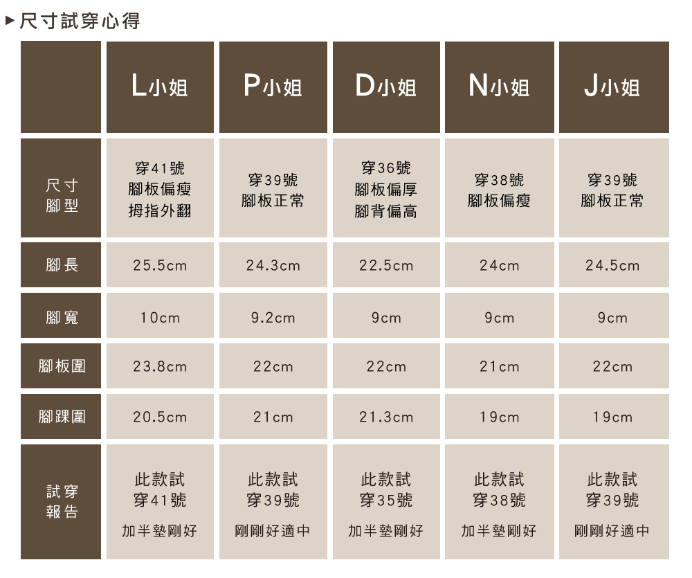 ※ 此鞋款版型正常,可依平常穿著尺寸挑選;若腳板偏瘦,建議搭配半墊穿著較合適。