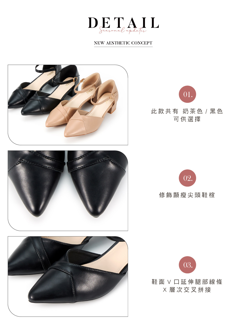 │鞋面V口延伸腿部線條 X 層次交叉拼接