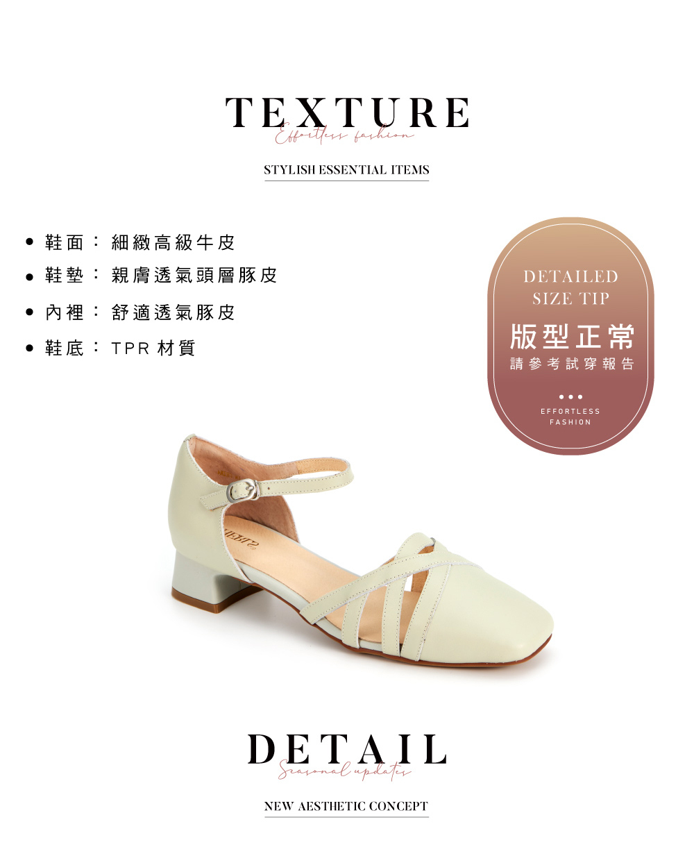 ※ 試穿時切勿硬塞、踮腳或拗折腳背,若造成無法復原之皺褶,恕無法接受退/換貨