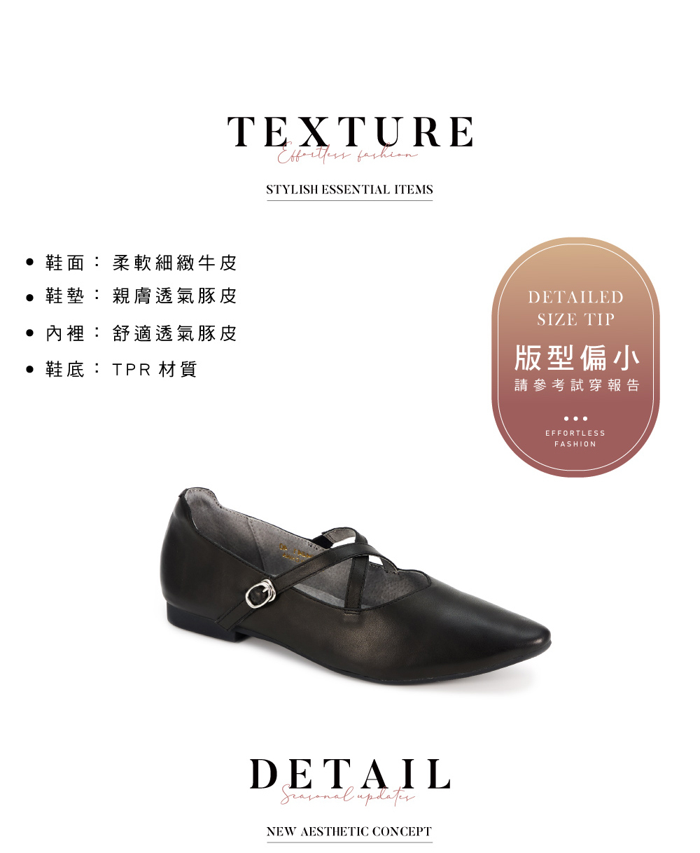 │以芭蕾舞鞋為設計發想,交叉繫帶瑪莉珍造型,氣質優雅