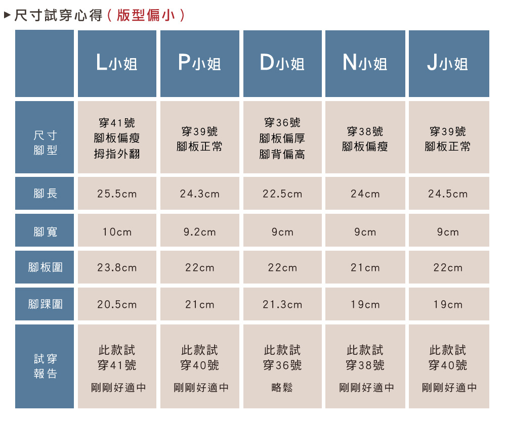 ※ 此鞋款版型偏小,建議挑選大一號較舒適;若腳板偏瘦,可依正常尺寸挑選。
