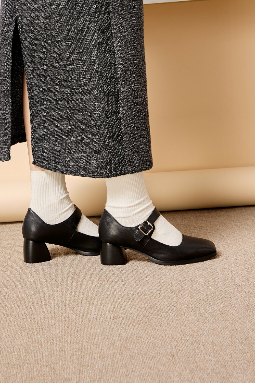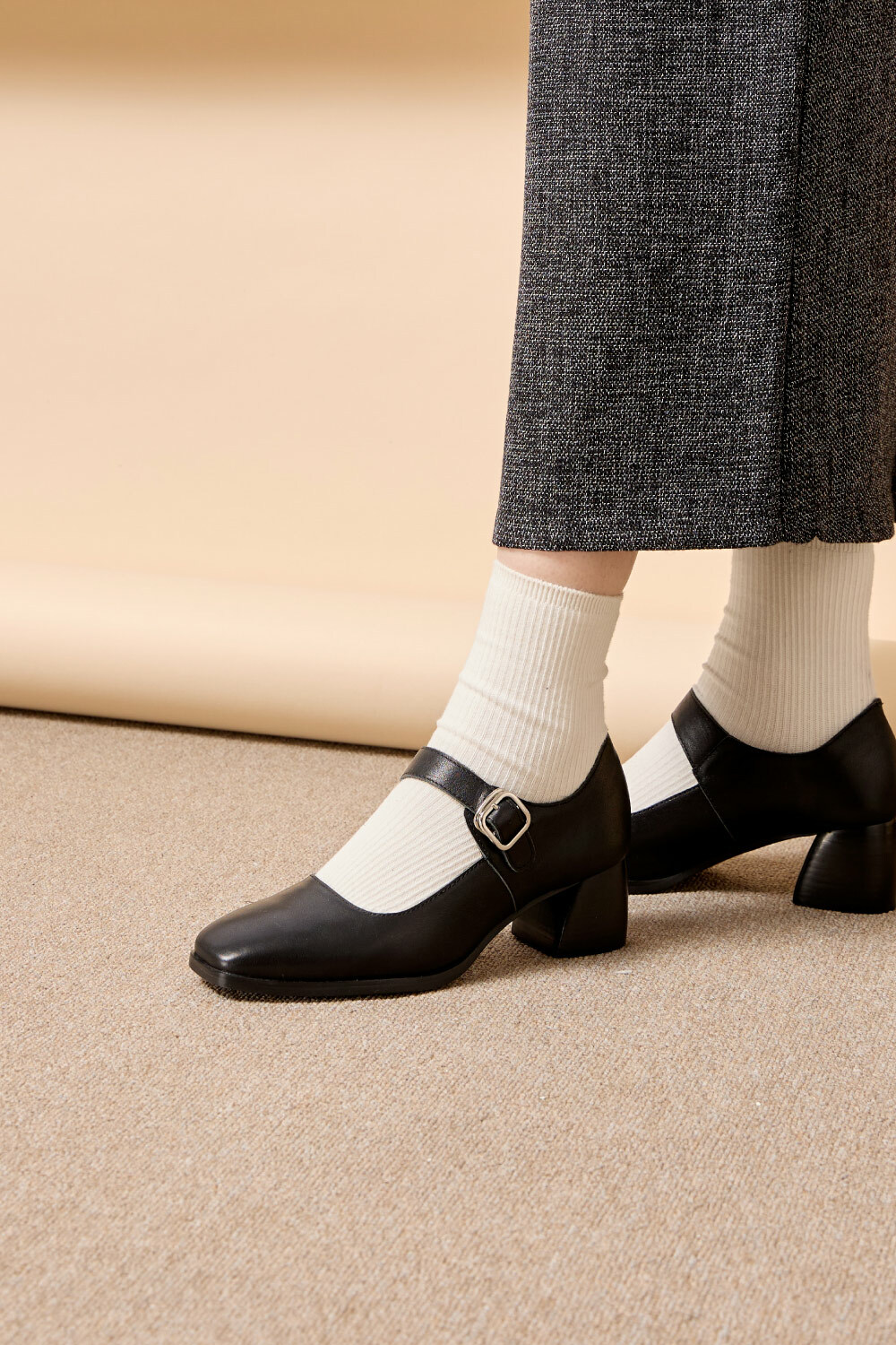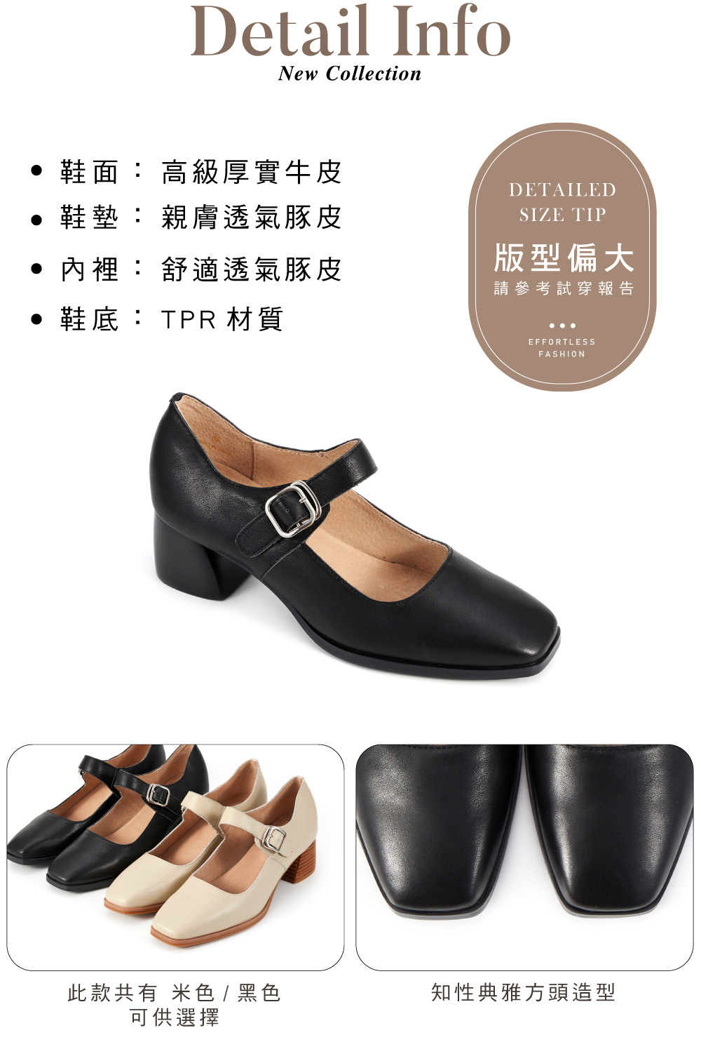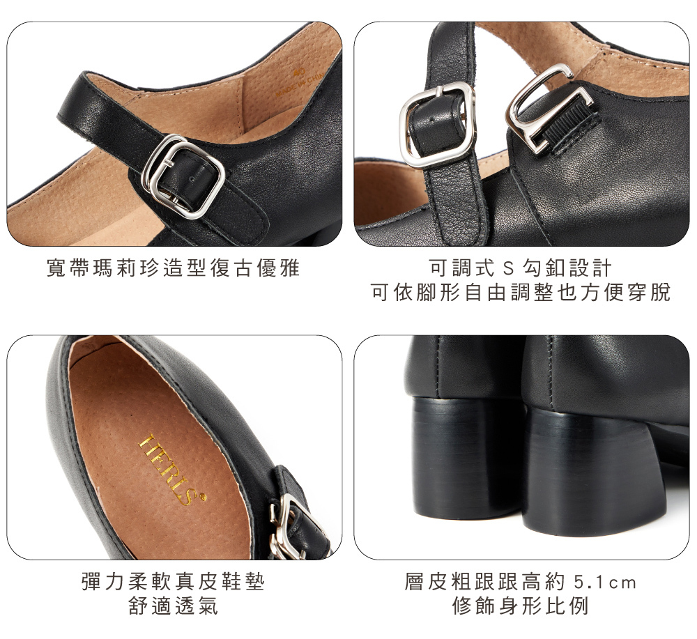 │層皮粗跟跟高約5.1cm,修飾身形比例