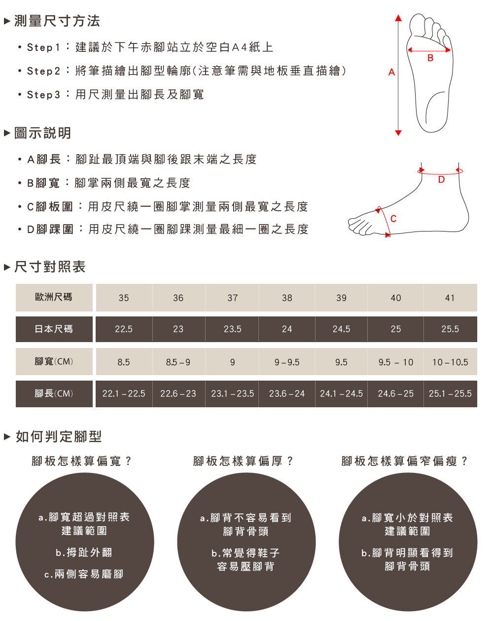 ※ 此鞋款版型正常,可依平常穿著尺寸挑選。