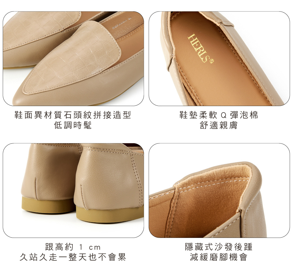 │鞋面異材質石頭紋拼接造型,低調時髦
