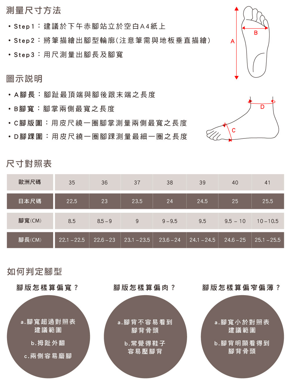 ▪ 此鞋款版型正常,可依平常穿著尺寸挑選