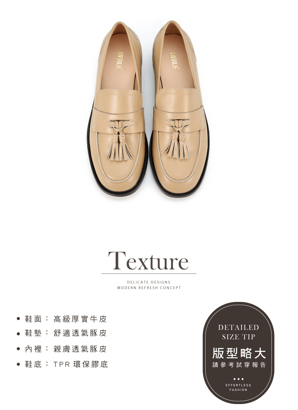 │高級厚實全真皮製成(鞋面皮革因特殊染色處理,遇水可能會產生些微掉色/暈染現象,請盡量避免雨天穿著)
