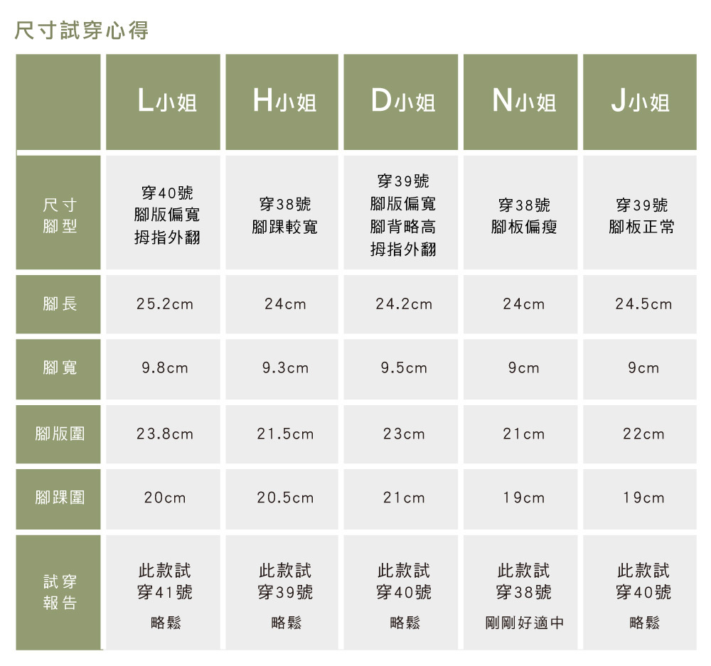 ※ 此鞋款版型略小,建議選大一號較舒適;挑選尺寸前建議參考下方試穿報告。