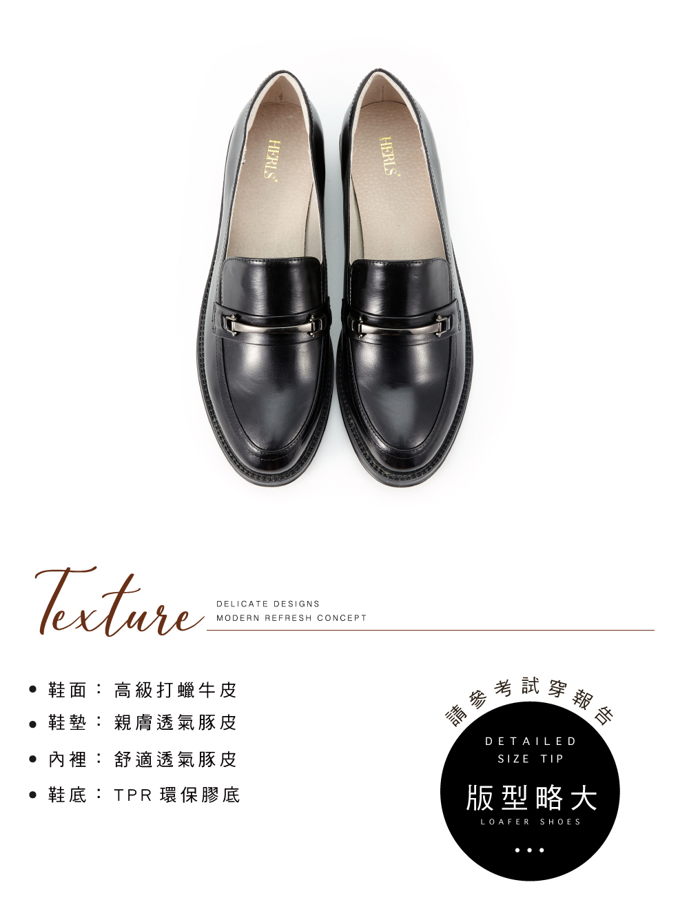▪︎ 商品材質 鞋面打蠟牛皮 / 鞋墊+內裡豚皮 / TPR環保膠底