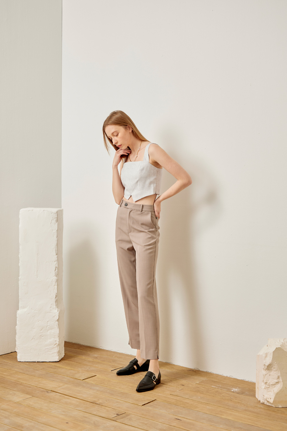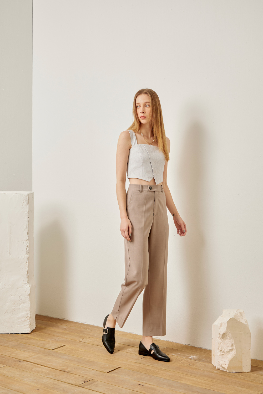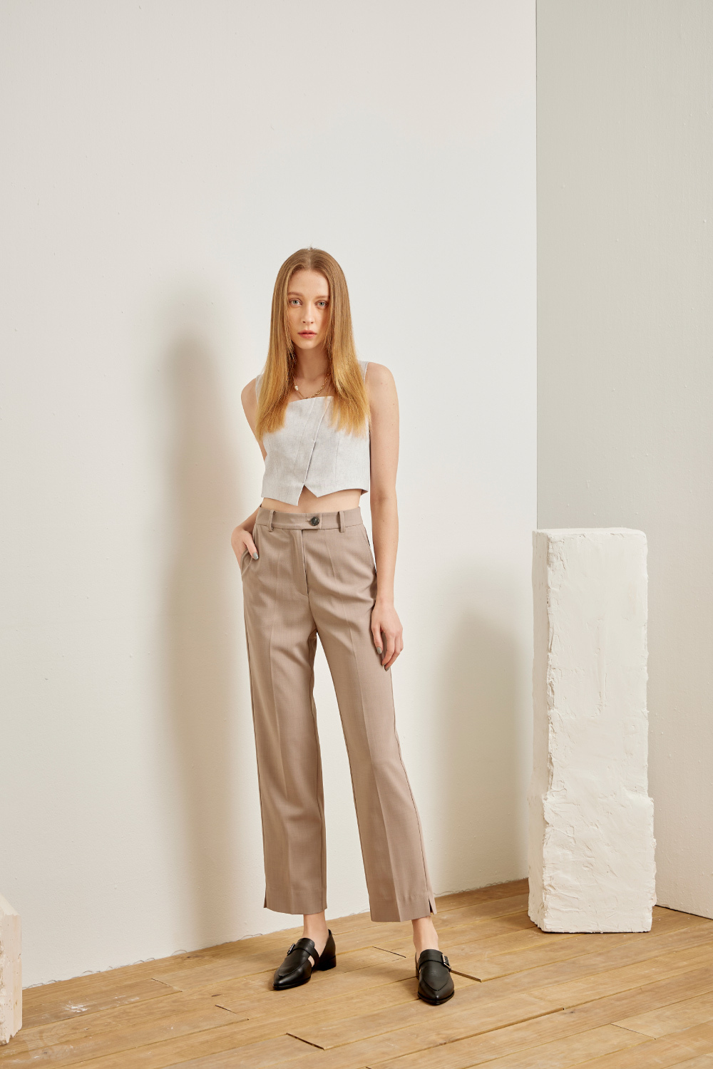 │側面V型剪裁延伸腿部線條,視覺感更修長