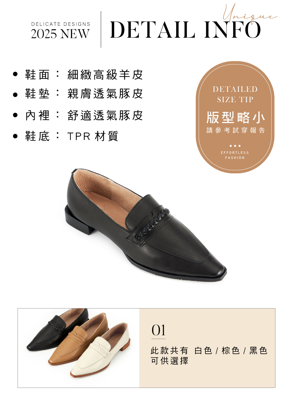 │此款共有 白色/棕色/黑色 可供選擇