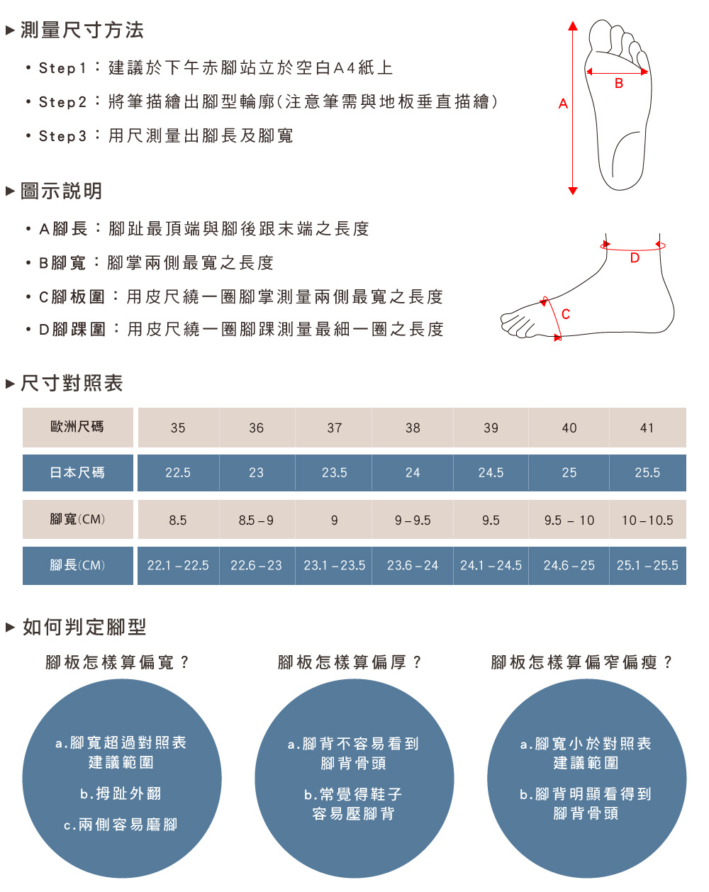 ▪ 此鞋款版型正常,可依平常穿著尺寸挑選