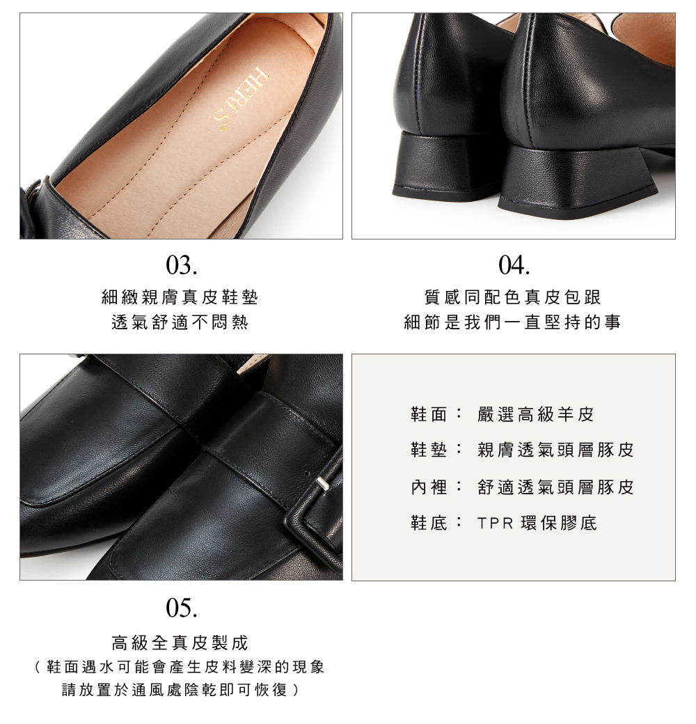 ▪ 商品材質 鞋面羊皮 / 鞋墊+內裡頭層豚皮 / TPR環保膠底