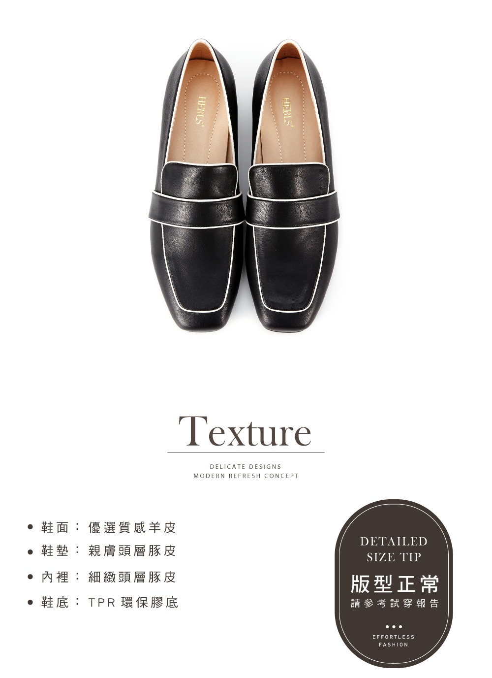 ▪ 商品材質 鞋面羊皮 / 鞋墊+內裡頭層豚皮 / TPR環保膠底