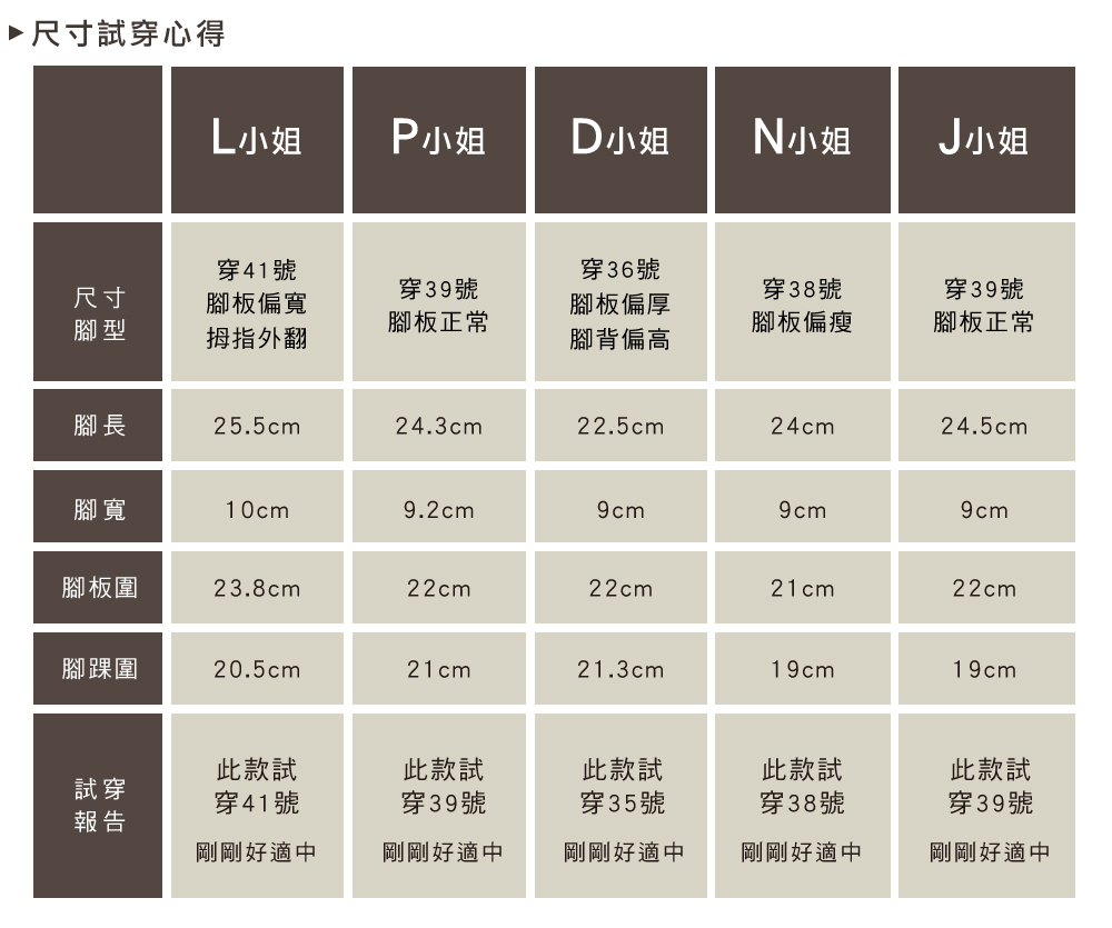 ※ 此鞋款版型正常,可依平常穿著尺寸挑選;若腳板偏寬/厚有拇指外翻者,建議挑選大一號較舒適。