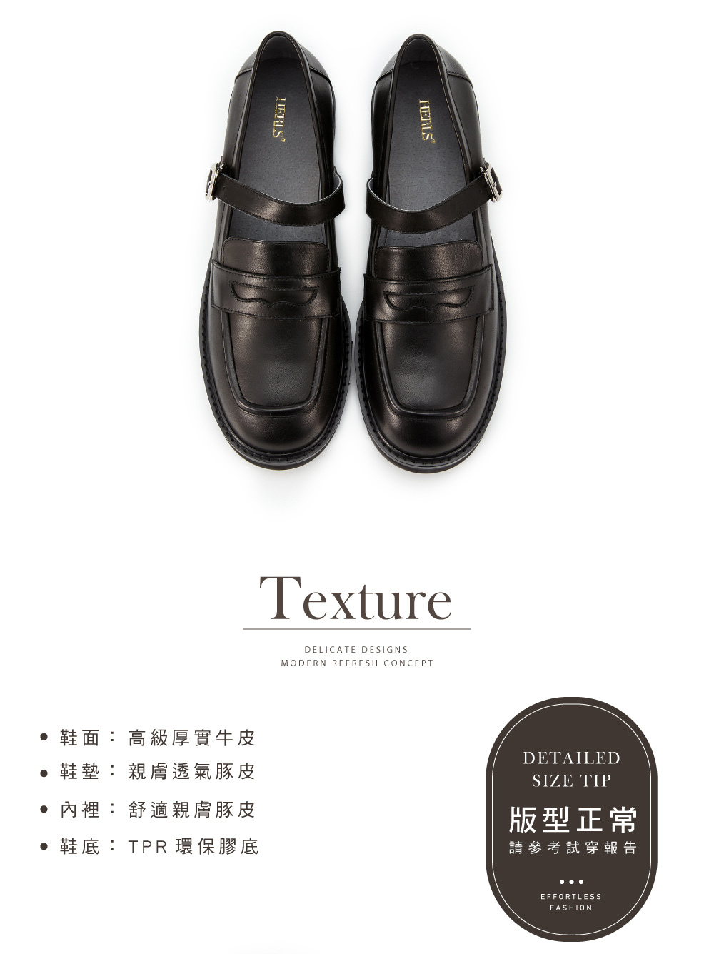 │高級厚實全真皮製成(鞋面皮革因特殊染色處理,遇水可能會產生些微掉色/暈染現象,請盡量避免雨天穿著)