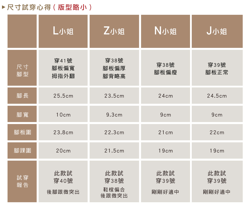 ※ 此鞋款版型略小,建議挑選大一號較合適;若不介意後腳跟微突出,可依正常尺寸挑選。