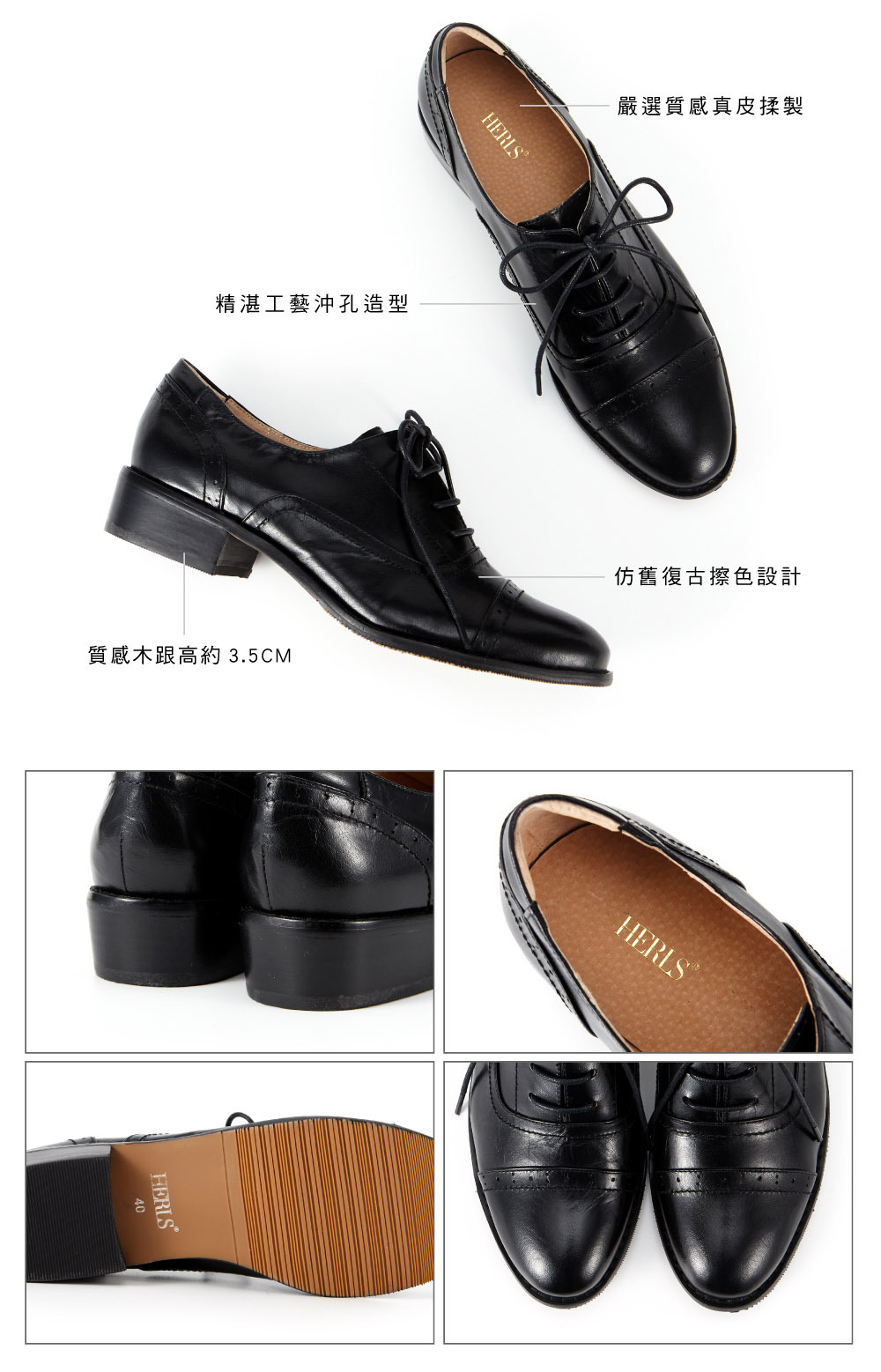 嚴選質感全真皮揉製而成的牛津鞋款,迷人復古的仿舊擦色,