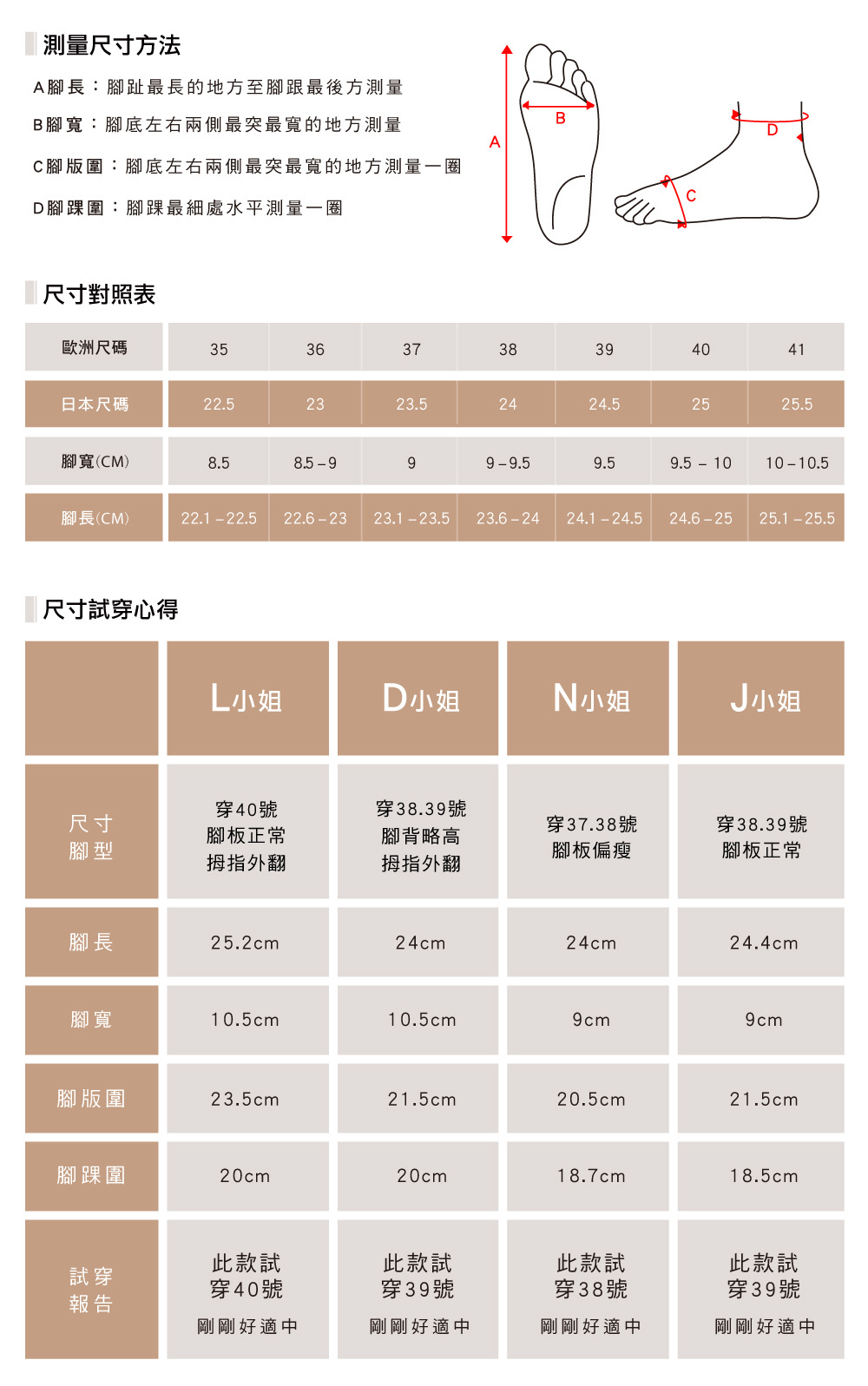 ※ 此鞋款版型正常,可依平常穿著尺寸挑選(詳細說明請看下方試穿報告)