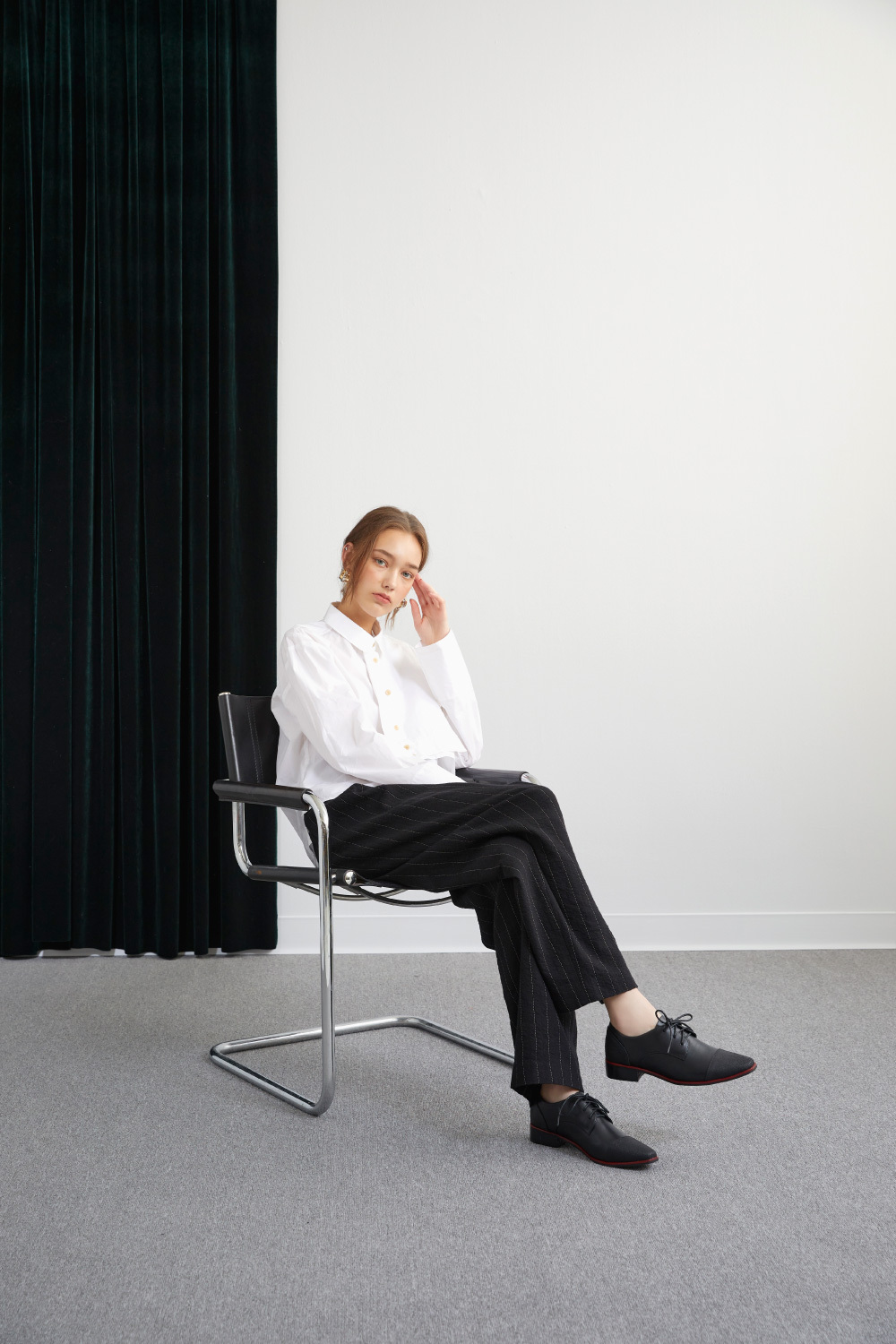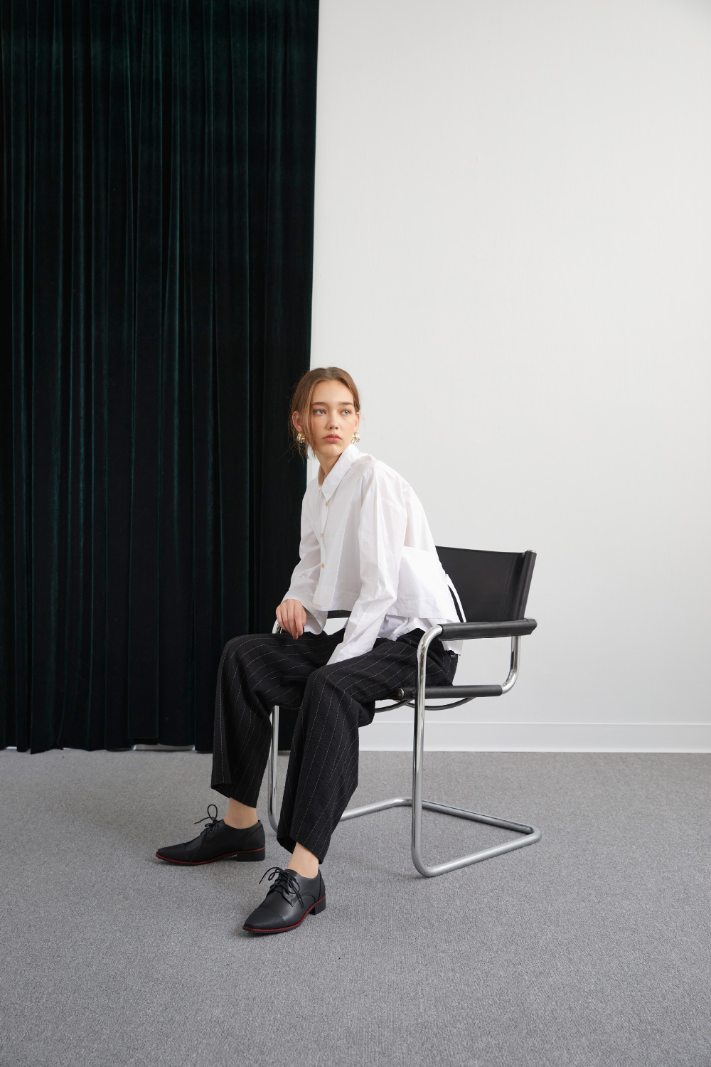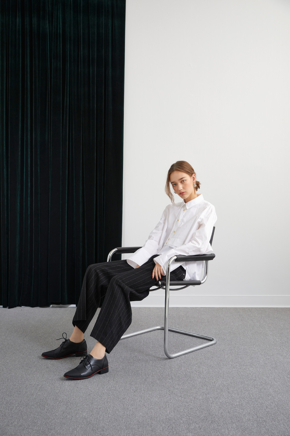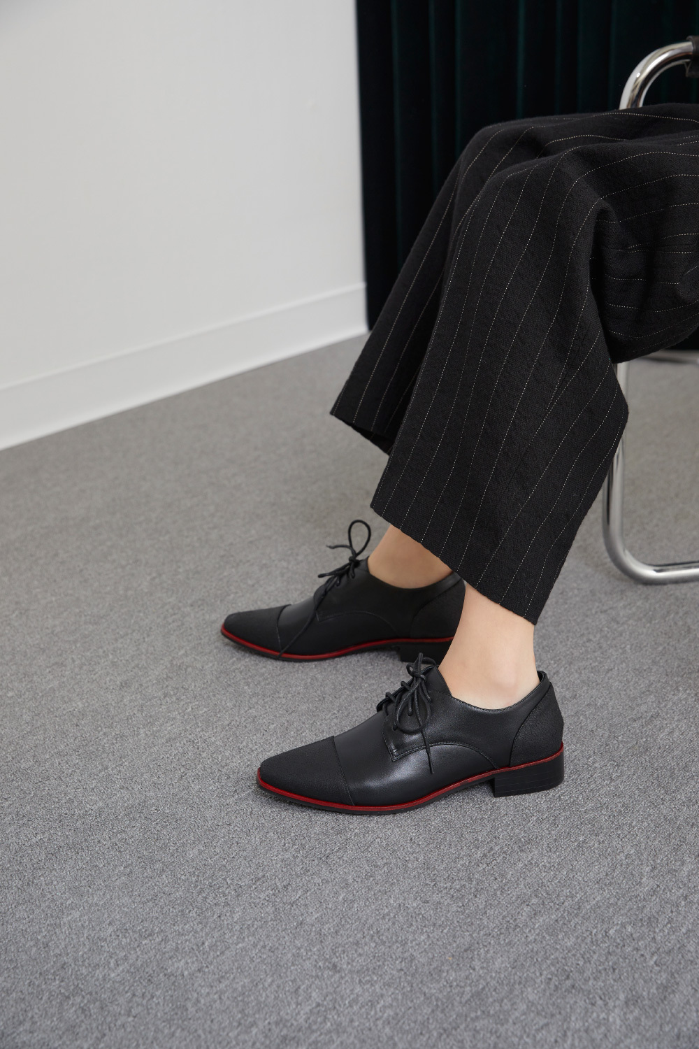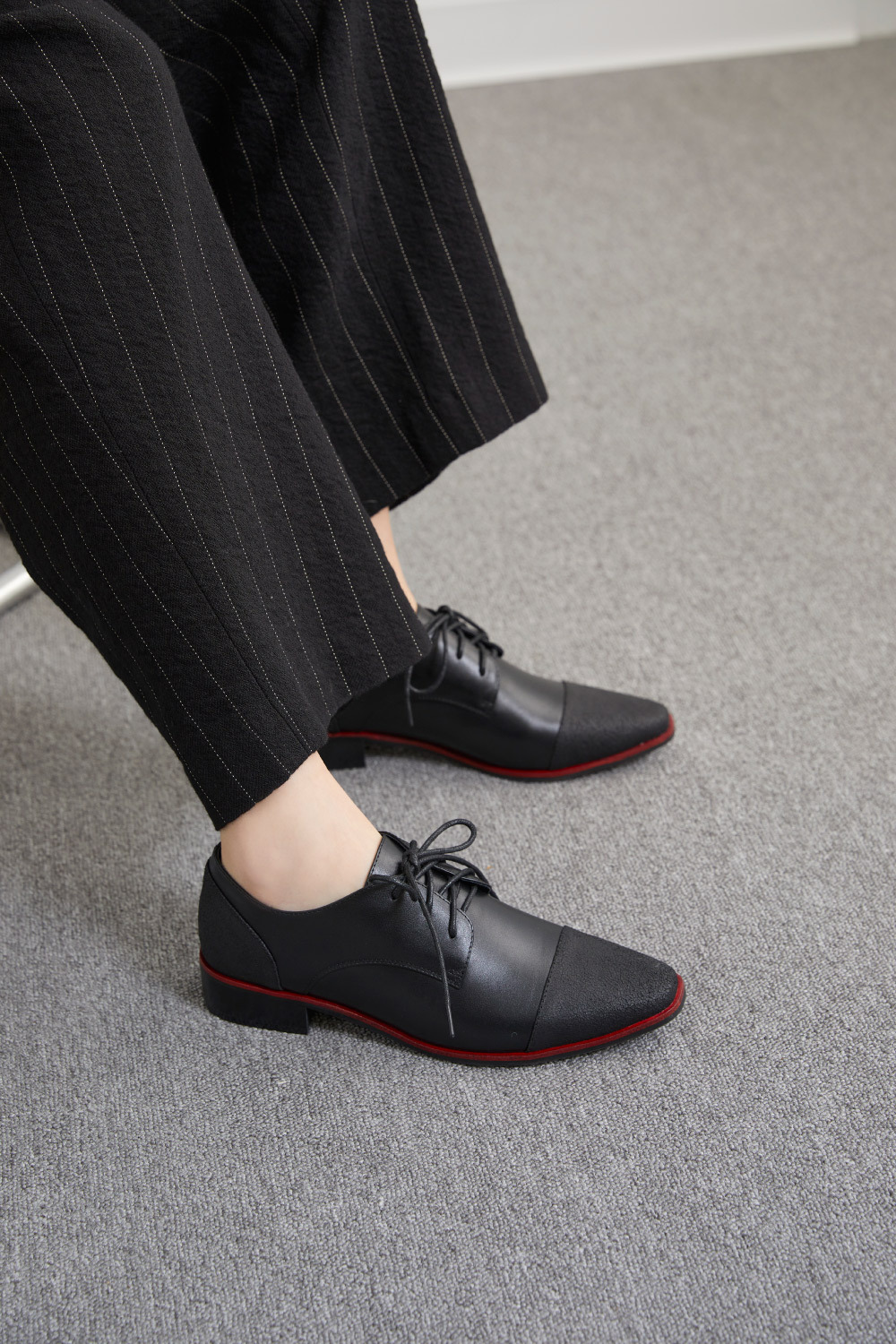 │鞋頭&後套時髦異材質拼接,簡約帶有層次的設計感