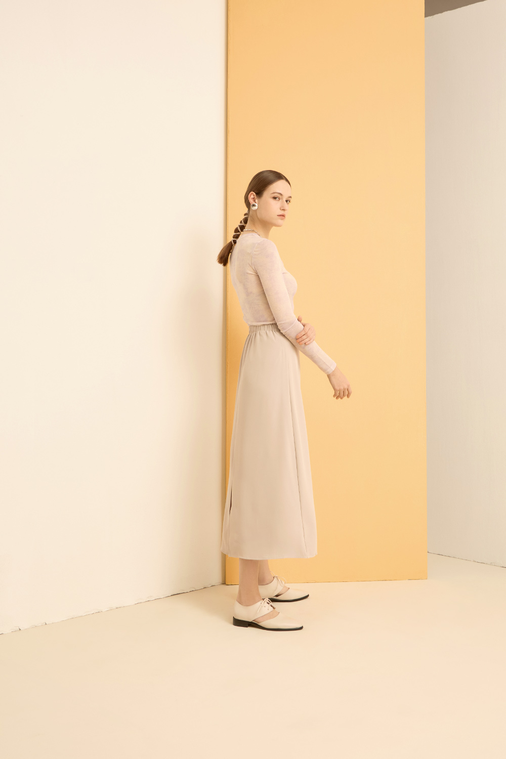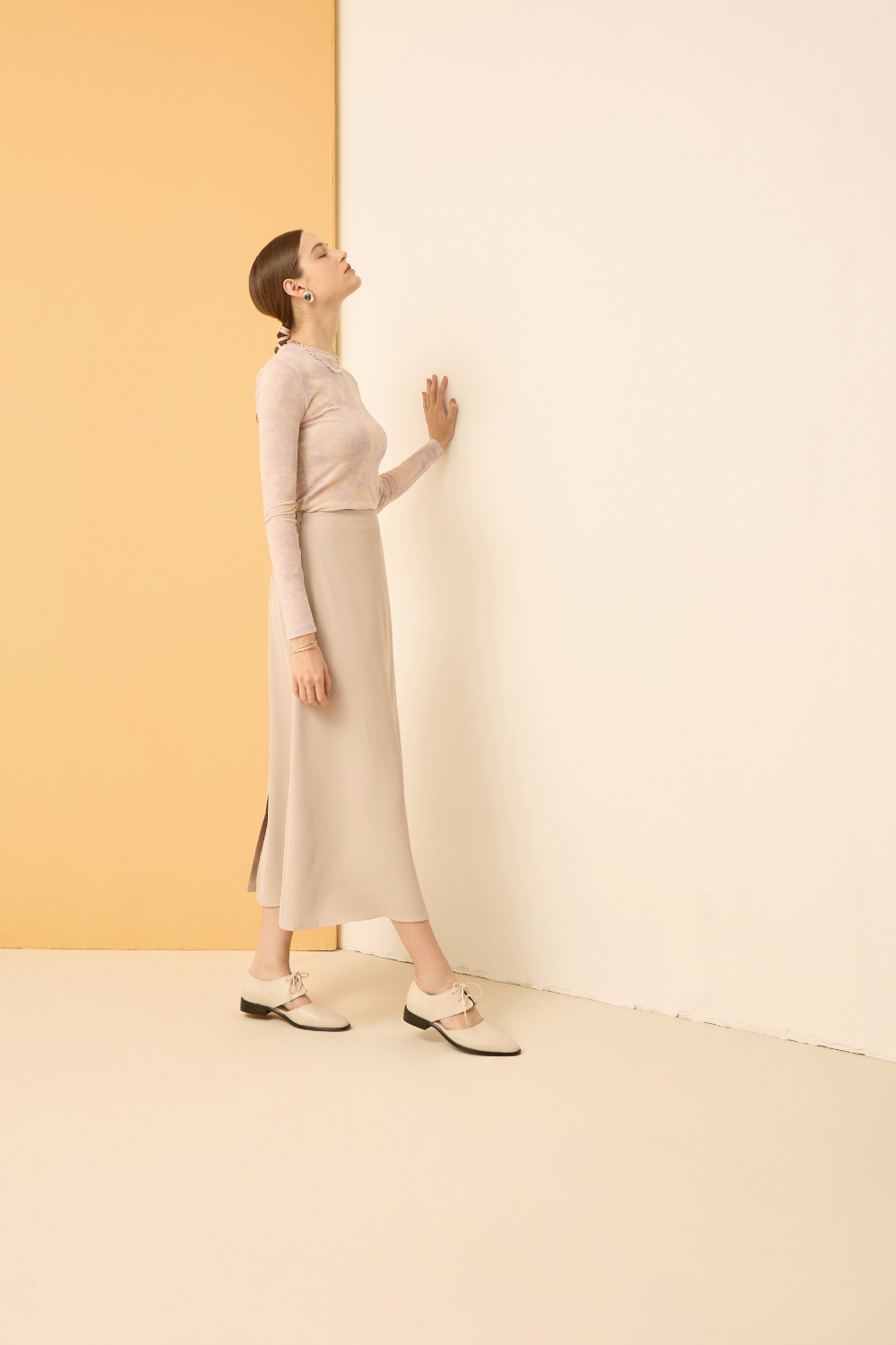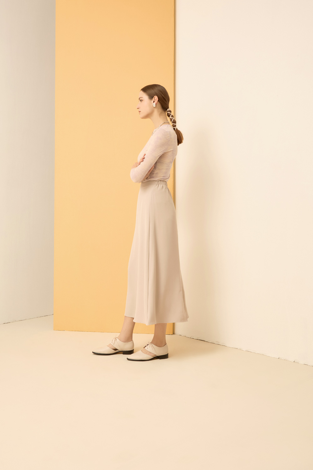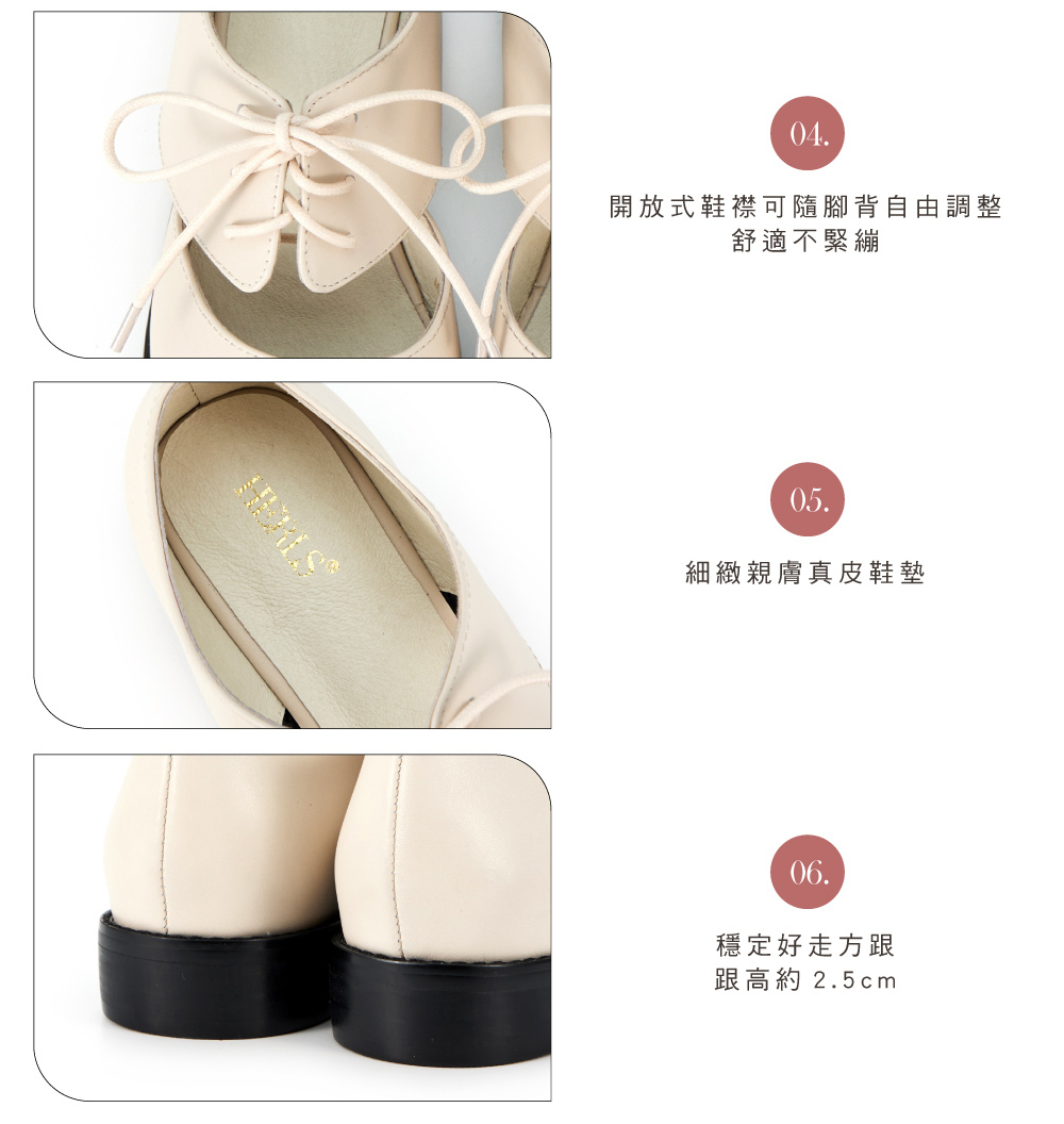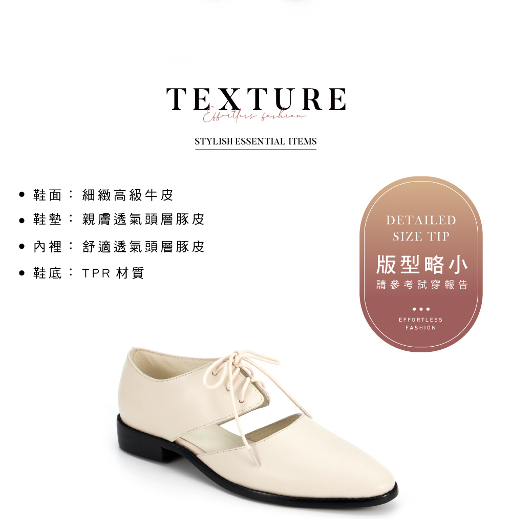[獨家訂製楦型]全真皮鏤空綁帶尖頭低跟牛津鞋 米白色
