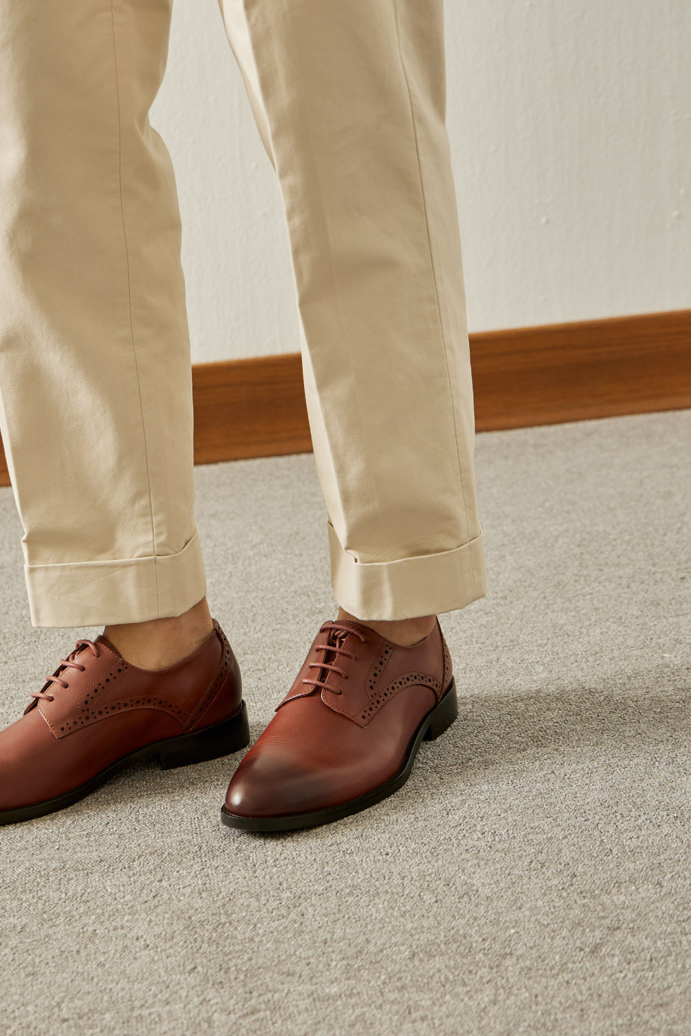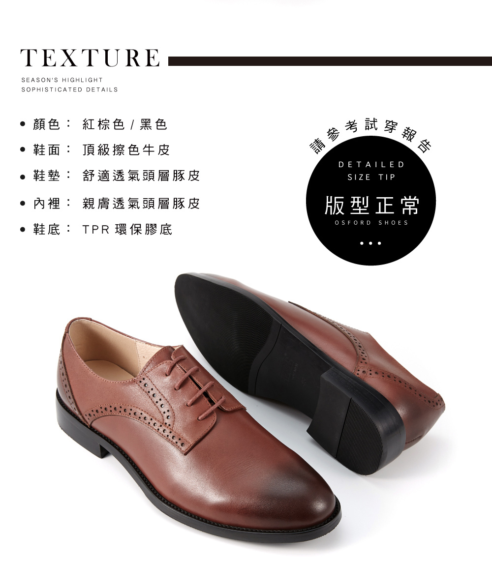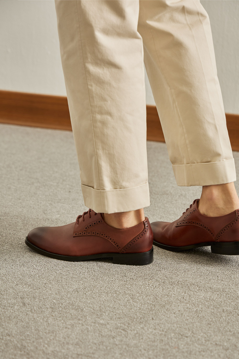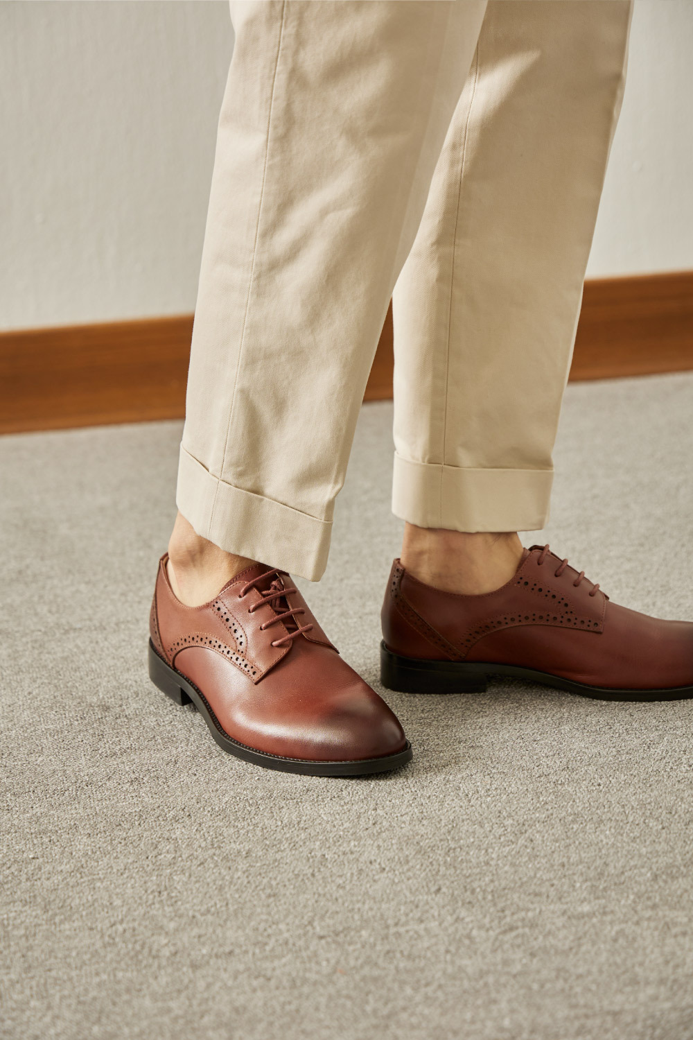 │擦色牛皮打造基本款的德比鞋(鞋面因特殊染色處理,遇水可能會產生些微掉色/暈染現象,請盡量避免雨天穿著)