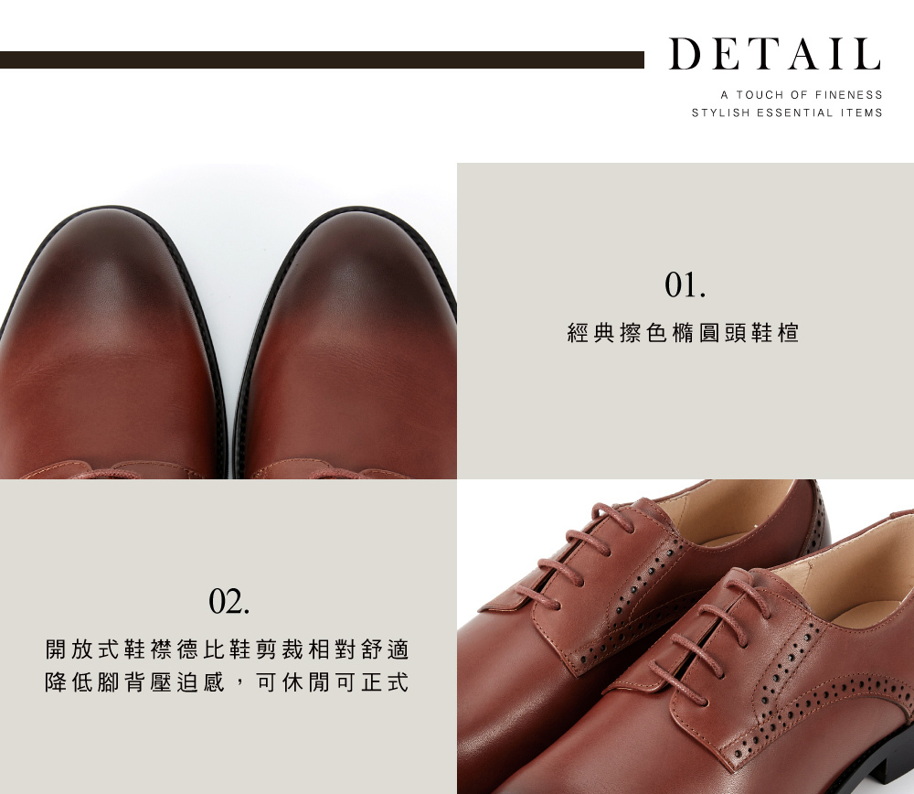 │開放式鞋襟德比鞋剪裁相對舒適,降低腳背壓迫感,可休閒可正式