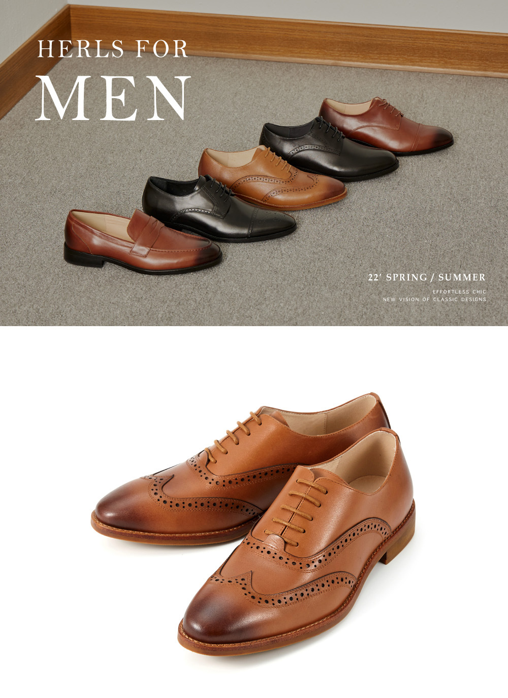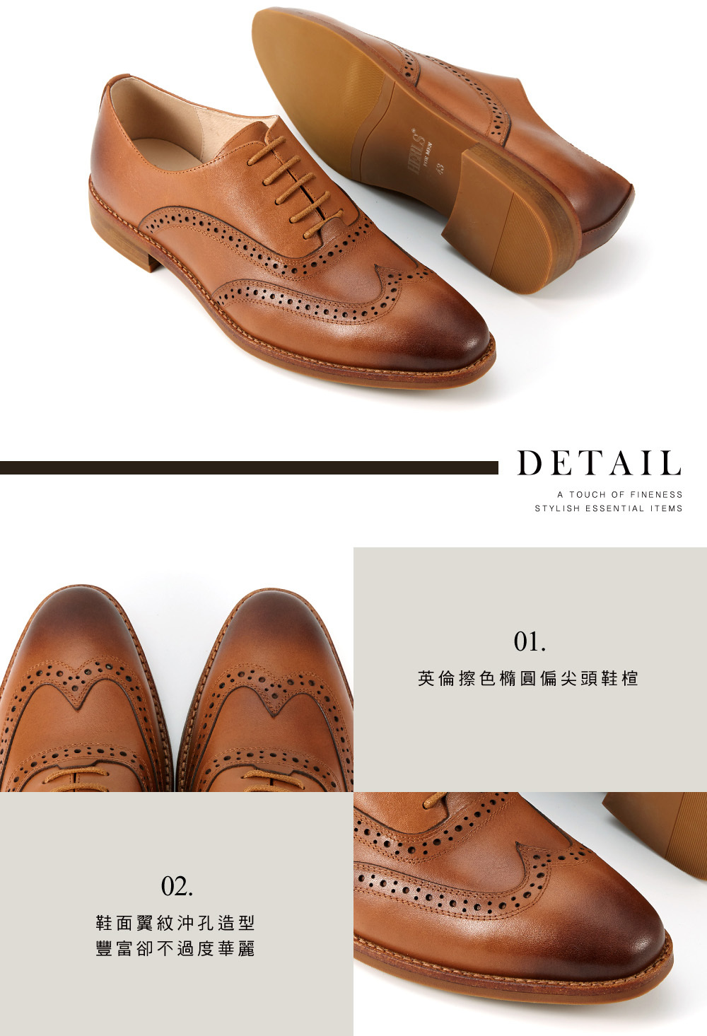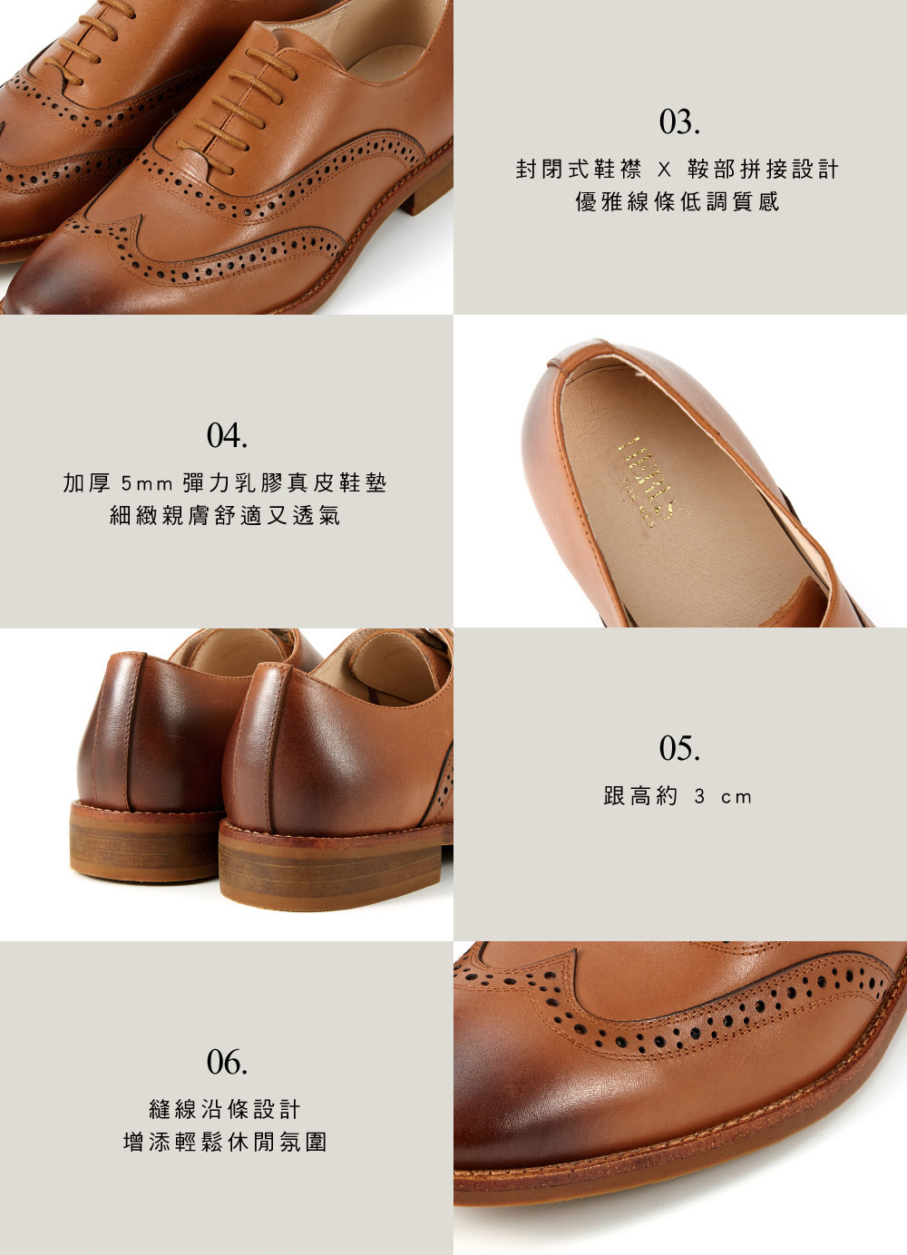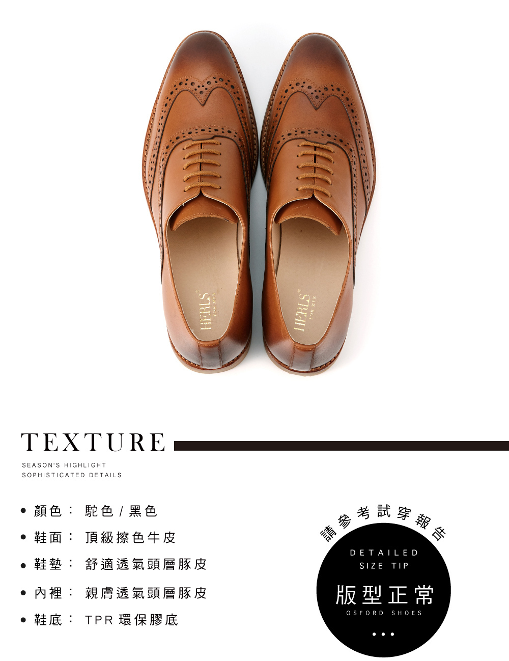 [男鞋系列] 全真皮翼紋沖孔鞍部牛津鞋 駝色