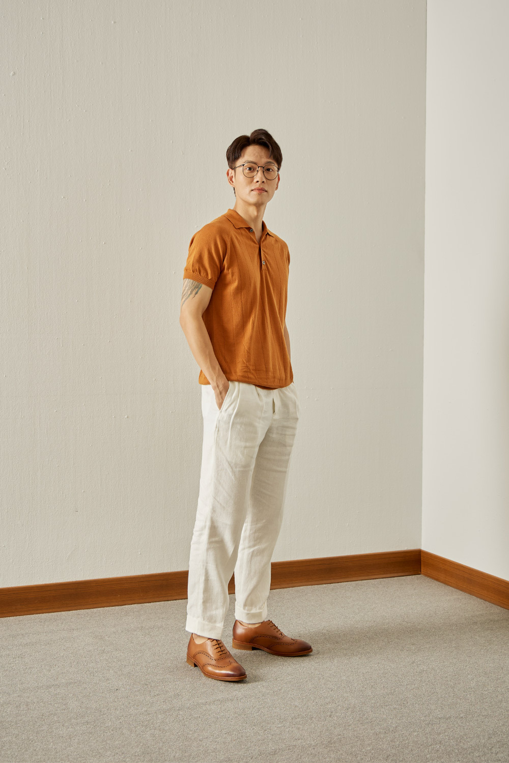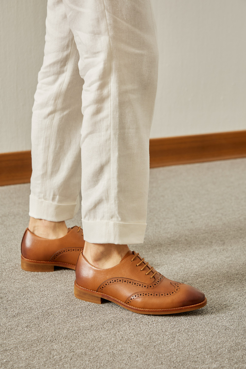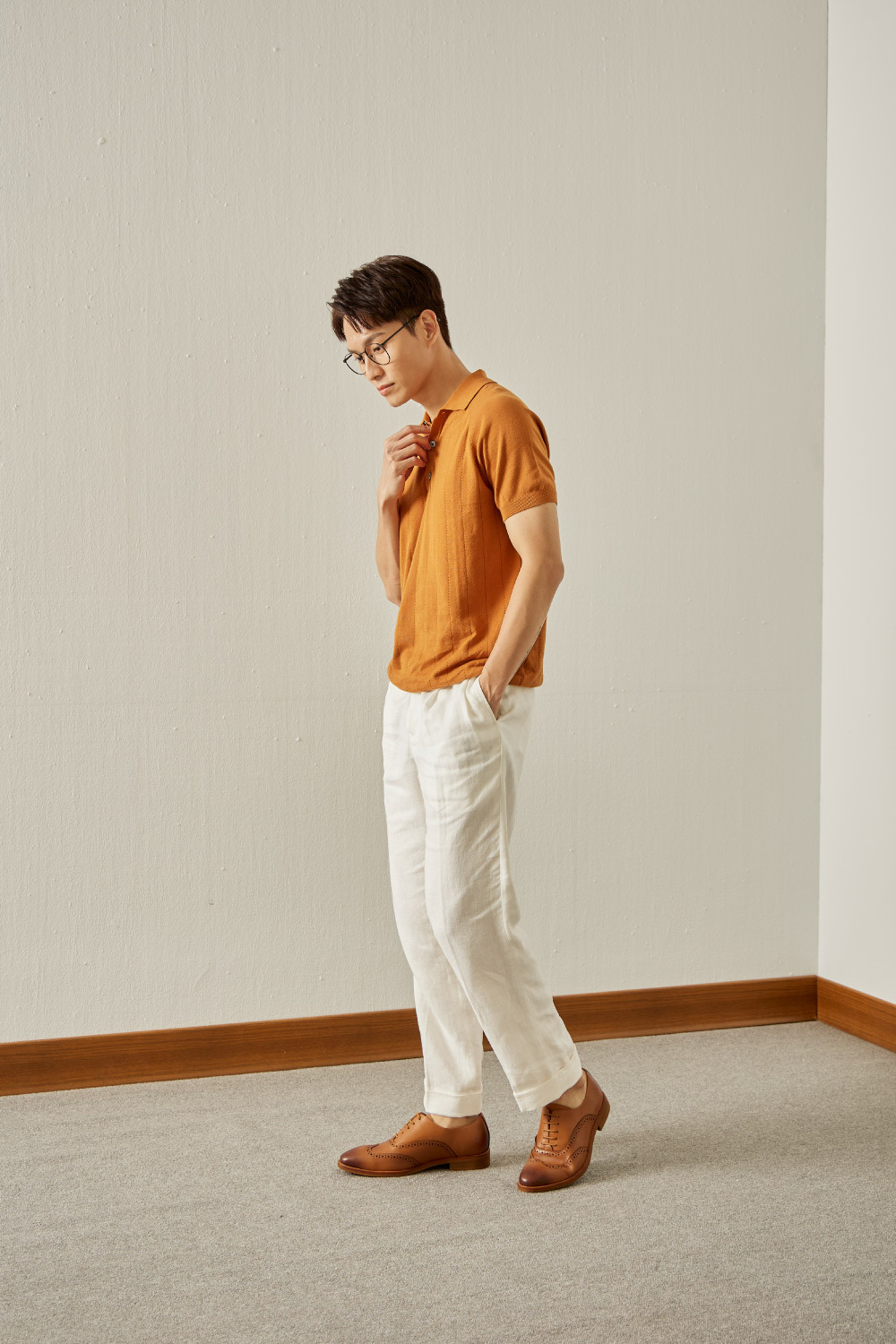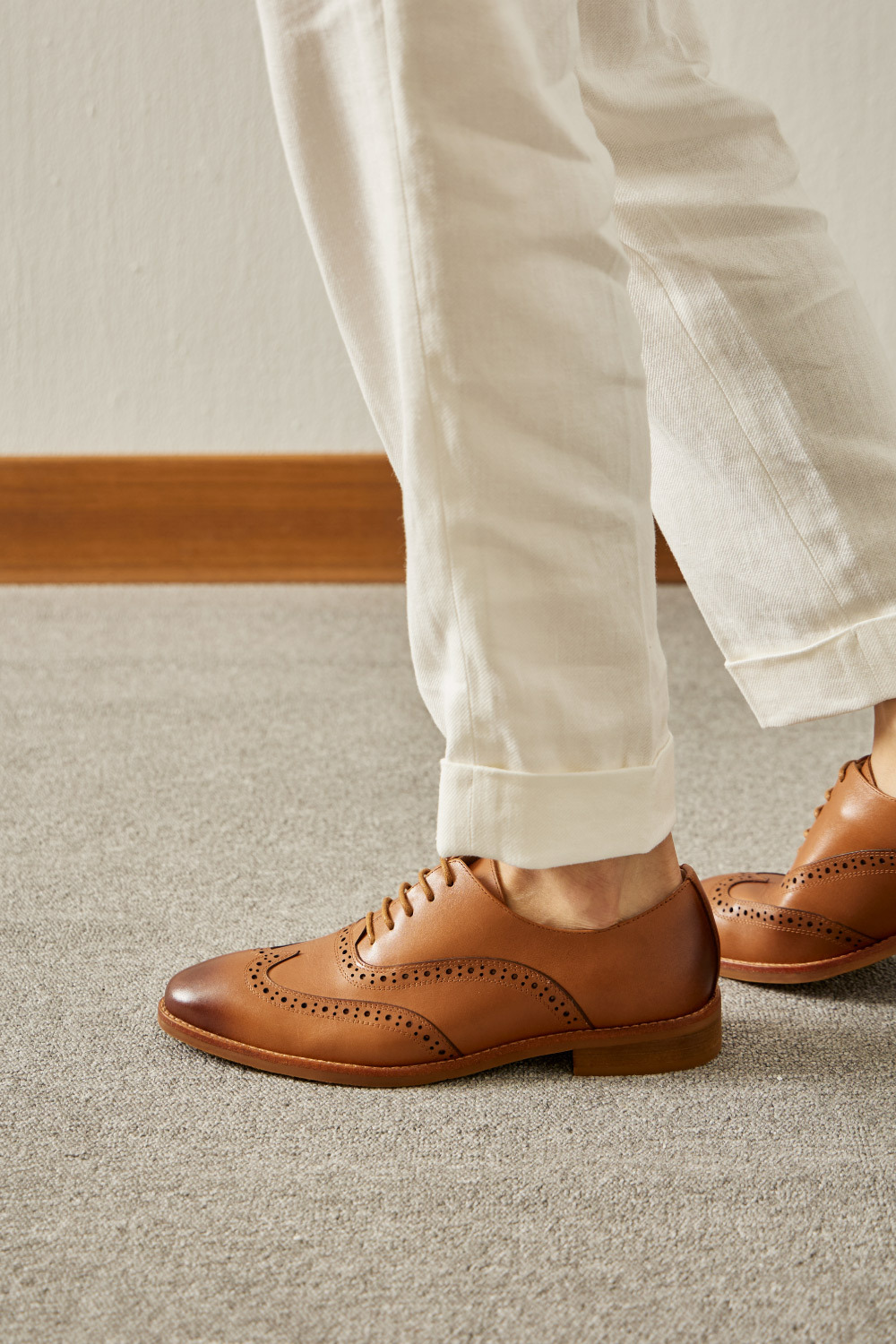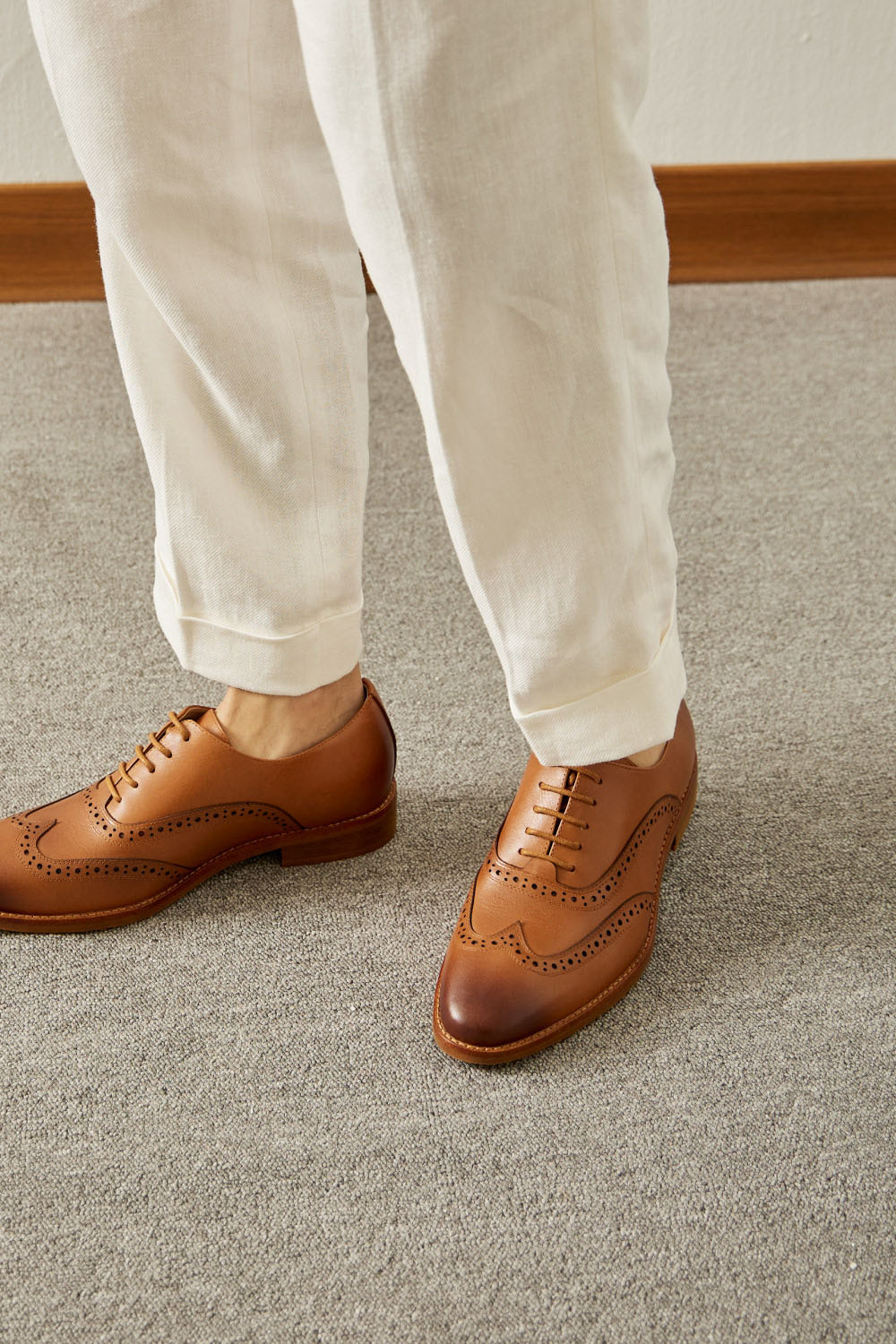 [男鞋系列] 全真皮翼紋沖孔鞍部牛津鞋 駝色