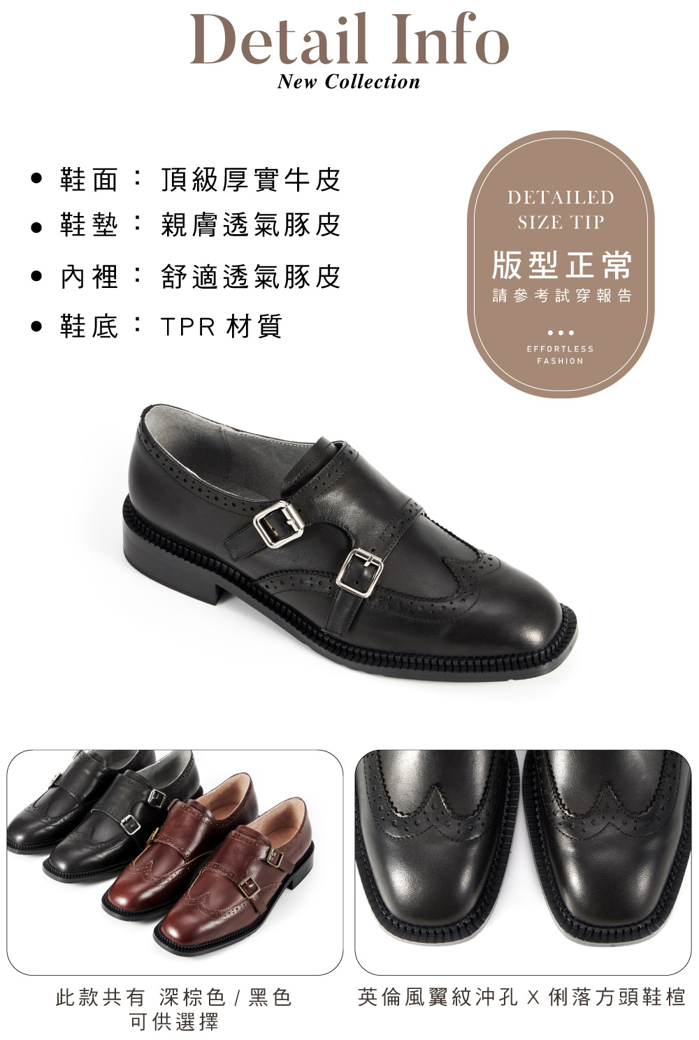│英倫風翼紋沖孔X俐落方頭鞋楦