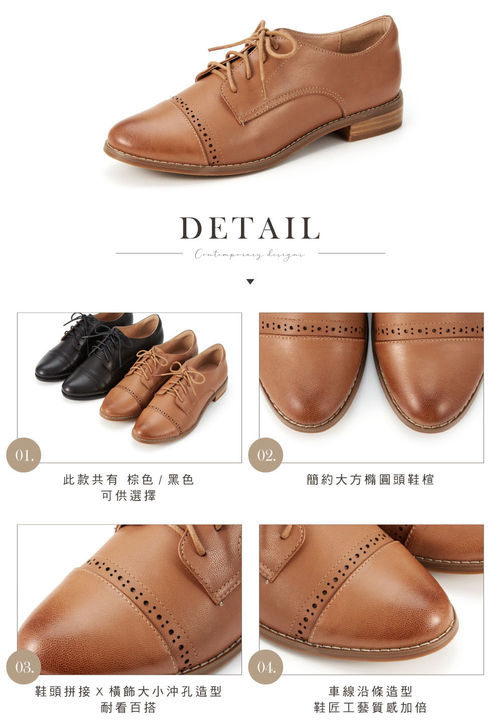 │鞋頭拼接X橫飾大小沖孔造型,耐看百搭