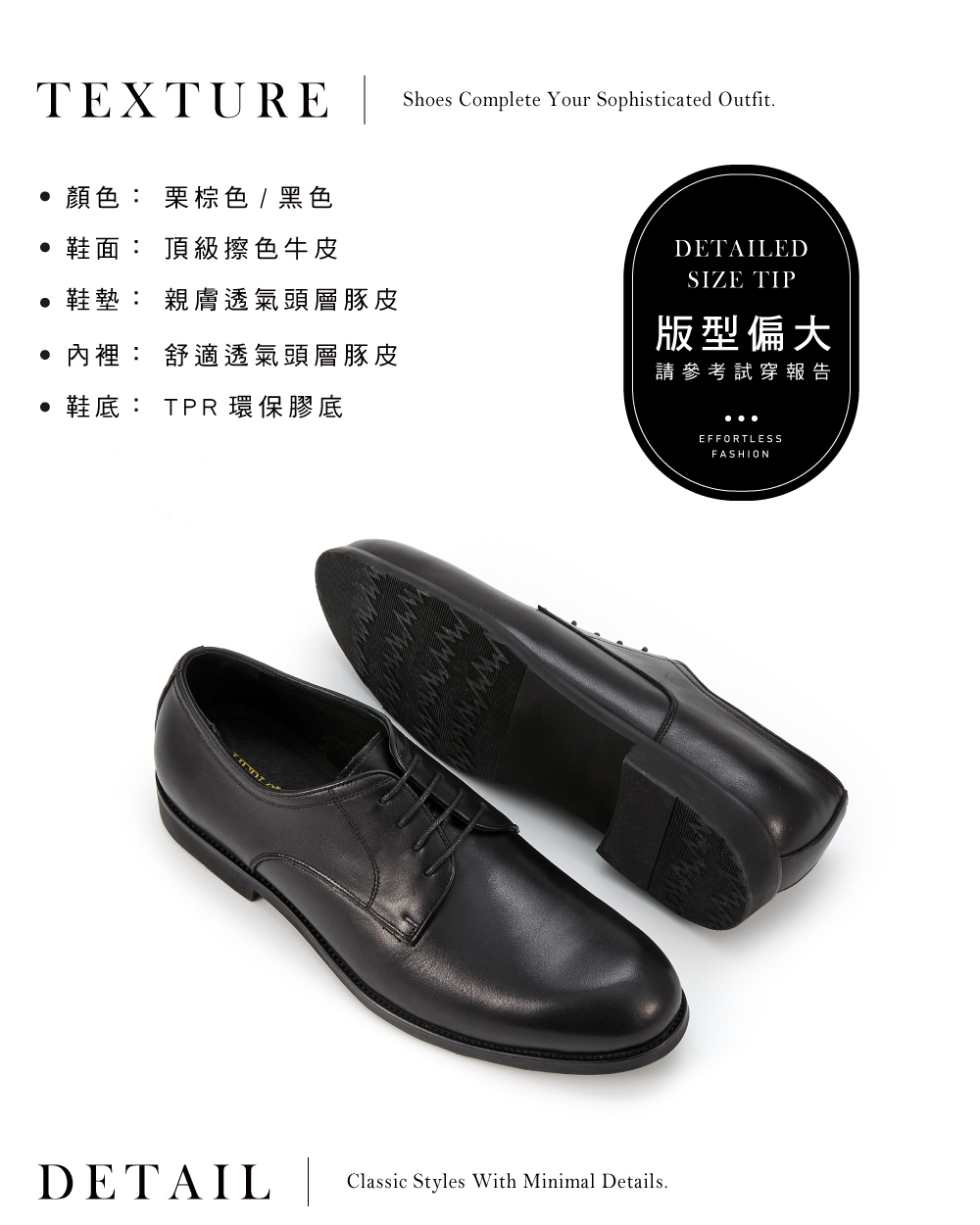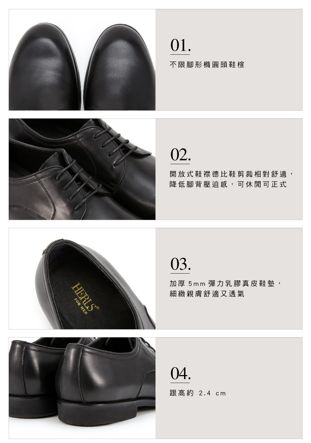 │開放式鞋襟德比鞋剪裁相對舒適,降低腳背壓迫感,可休閒可正式