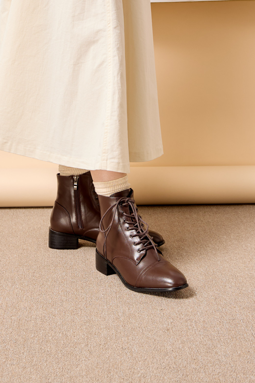 │同色鞋眼釦飾X綁帶造型,率性俐落