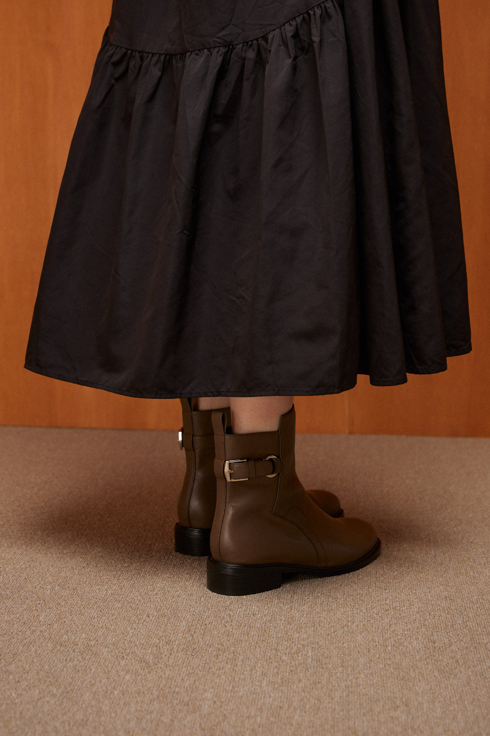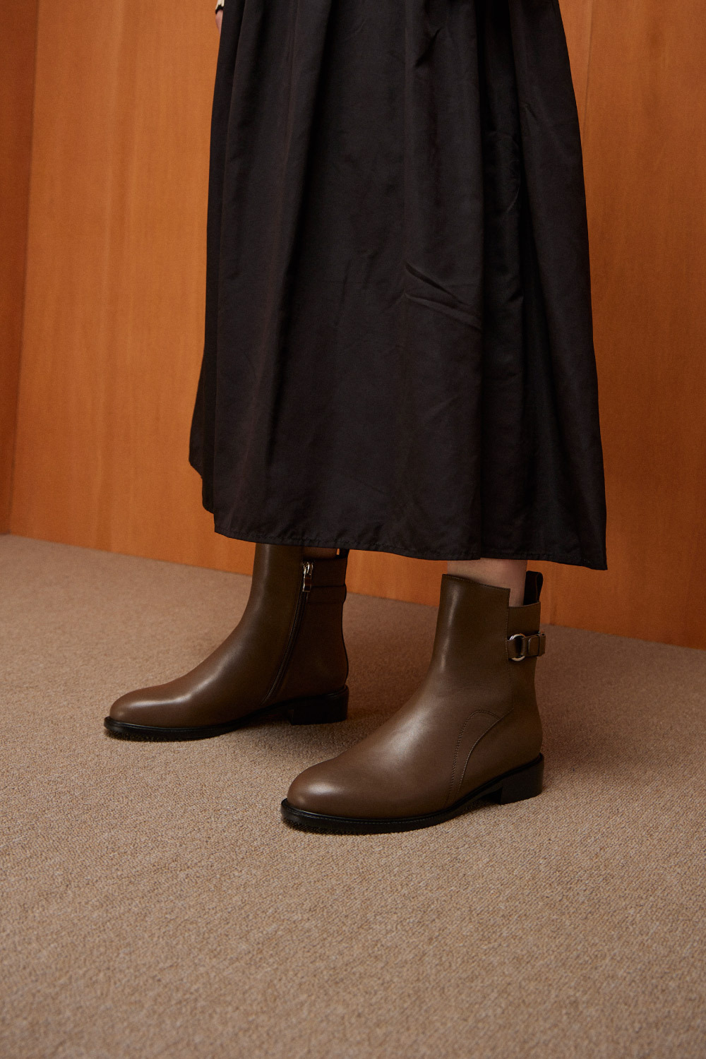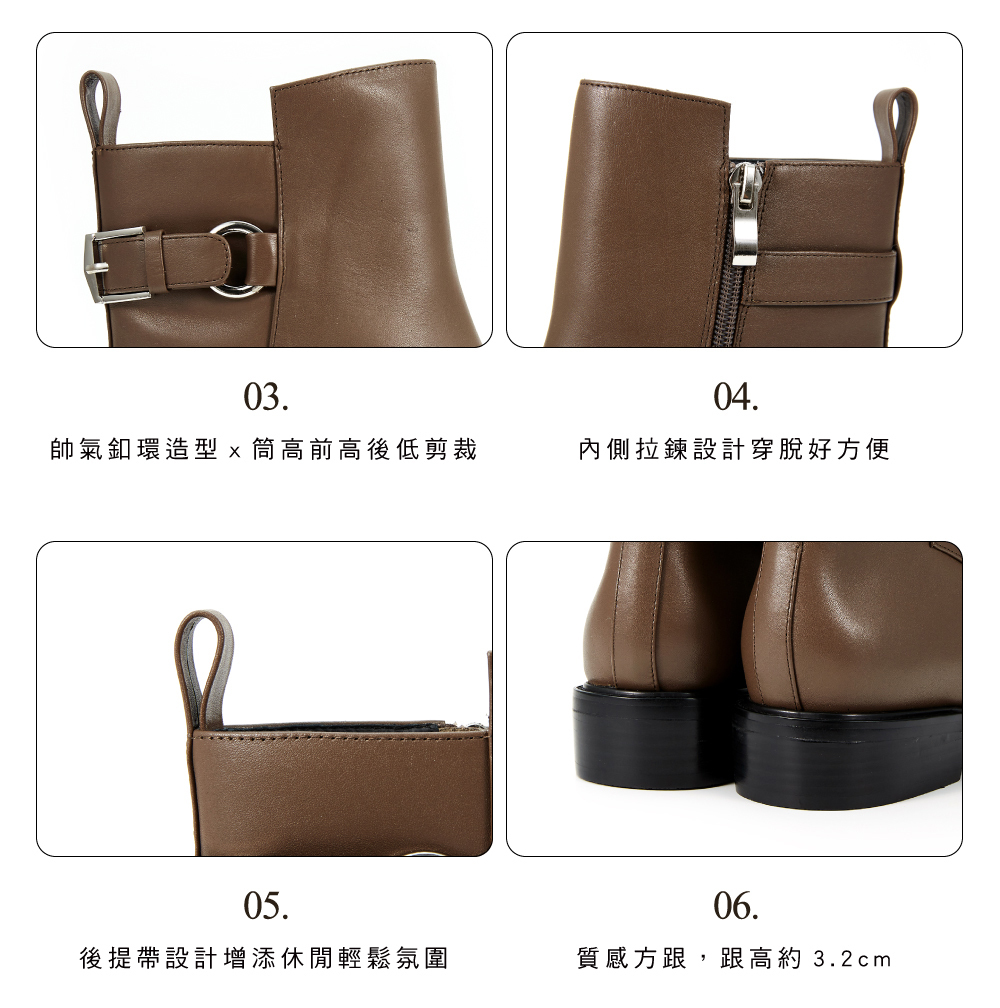 │帥氣釦環造型x筒高前高後低剪裁