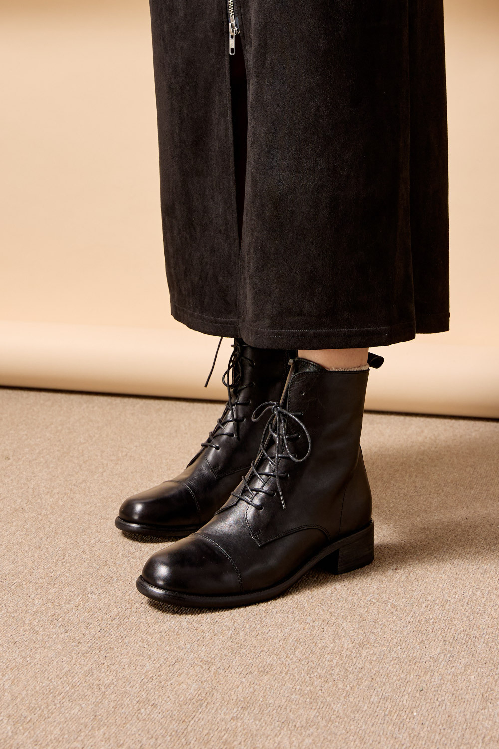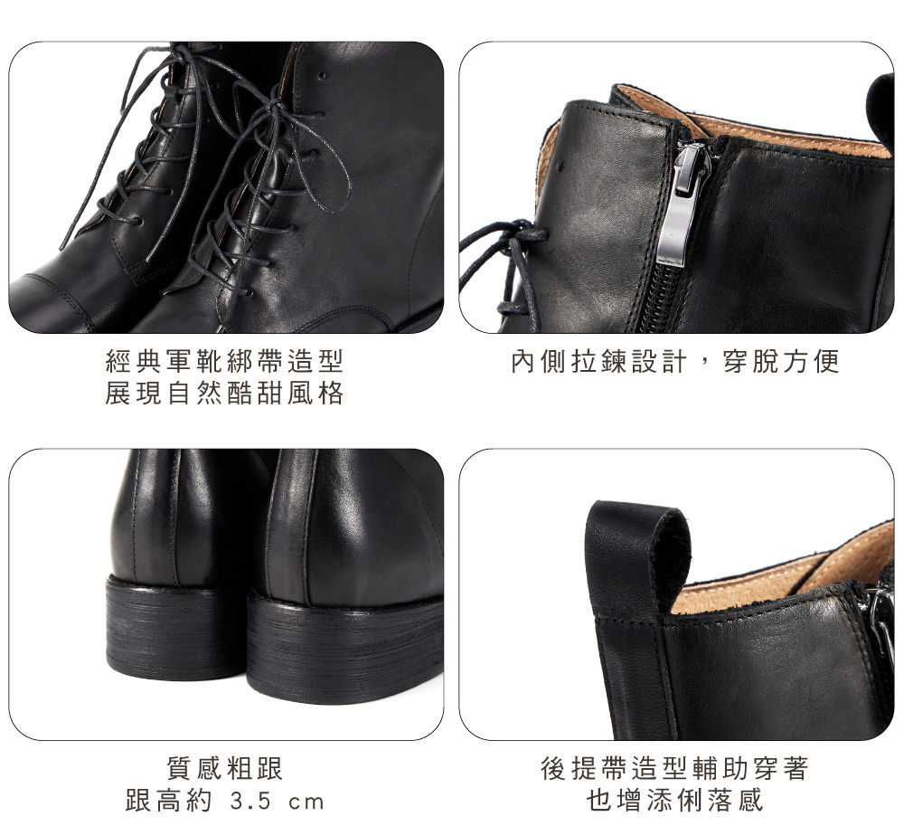 │經典軍靴綁帶造型,展現自然酷甜風格