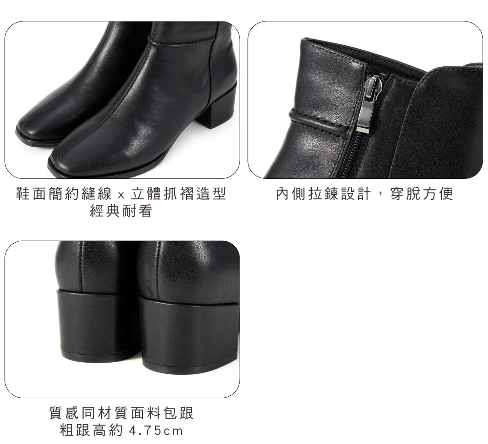 │鞋面簡約縫線x立體抓褶造型,經典耐看
