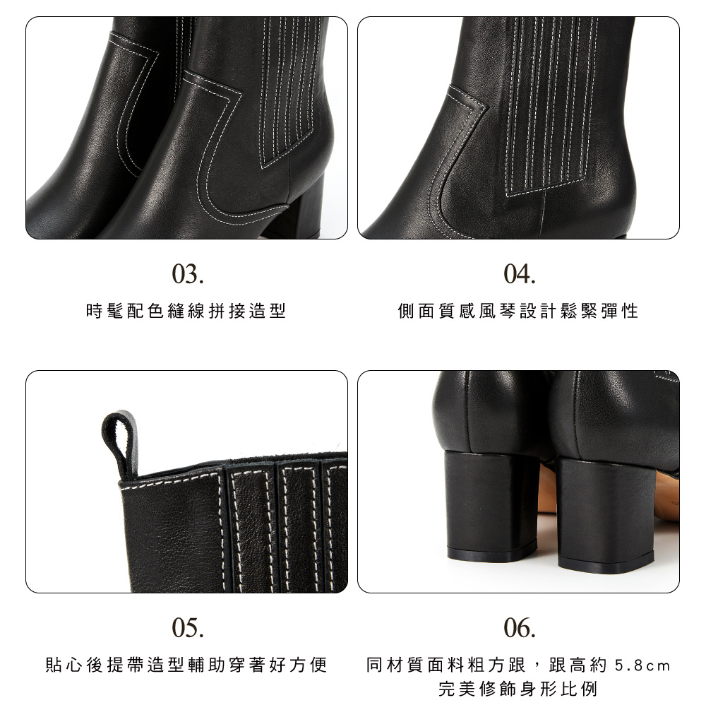 │同材質面料粗方跟,跟高約5.8cm,完美修飾身形比例