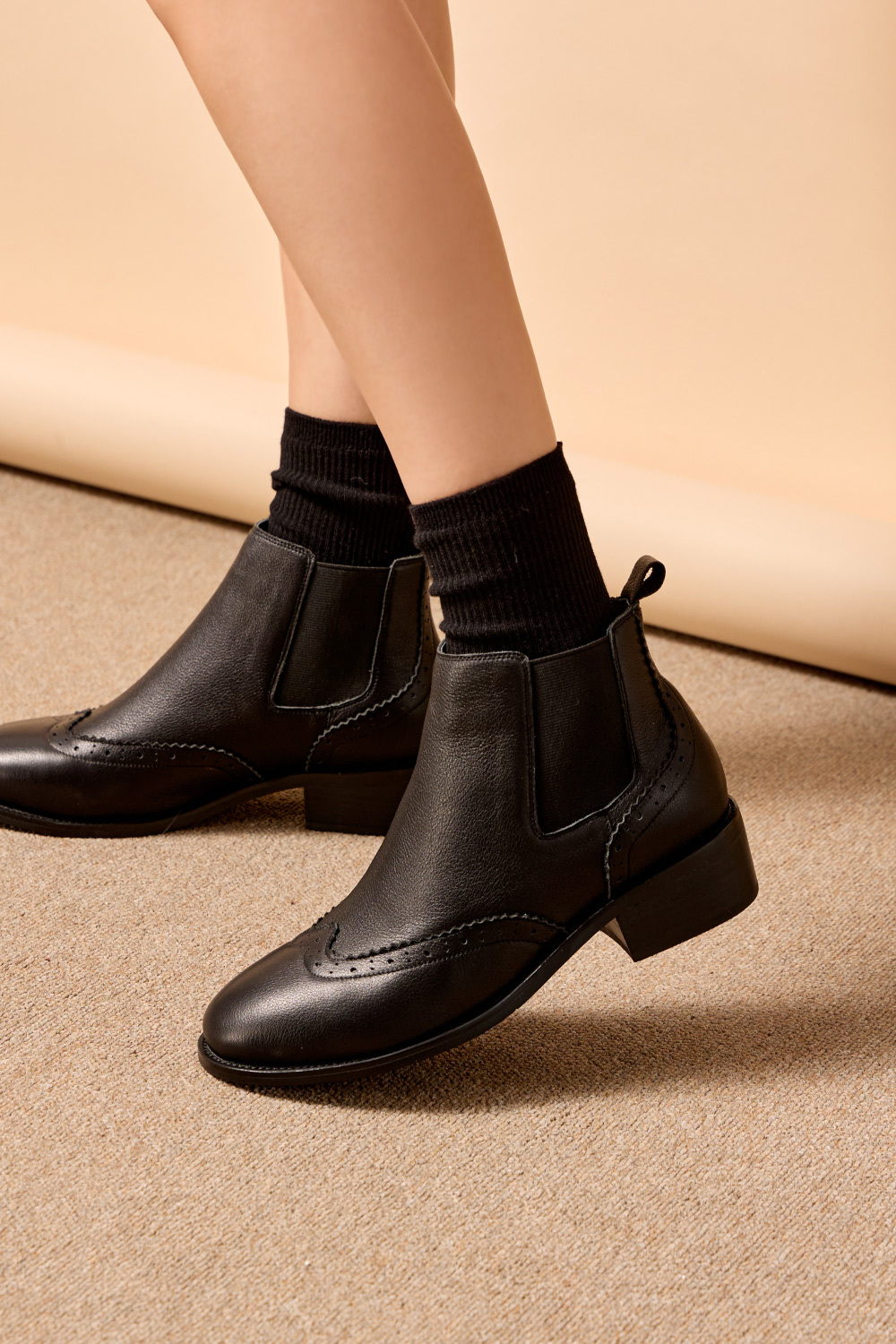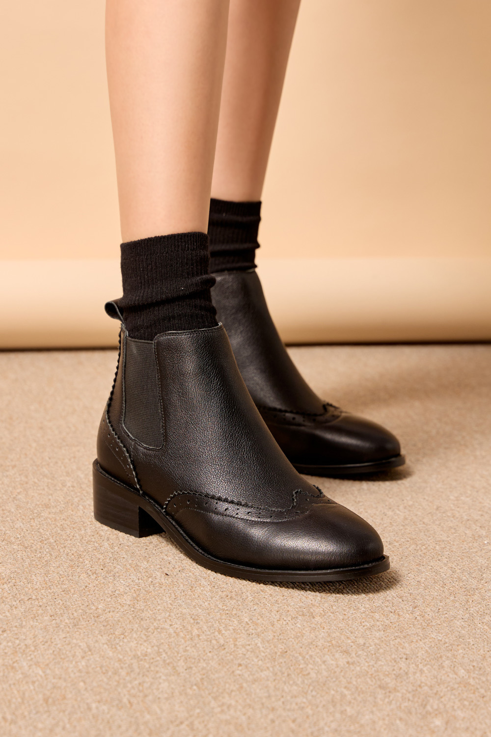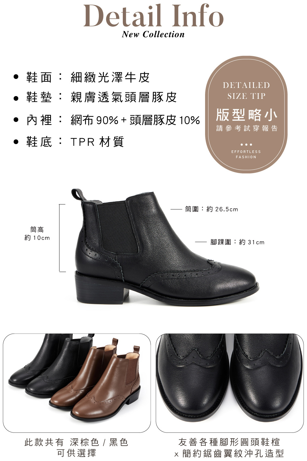 │友善各種腳形圓頭鞋楦x簡約鋸齒翼紋沖孔造型