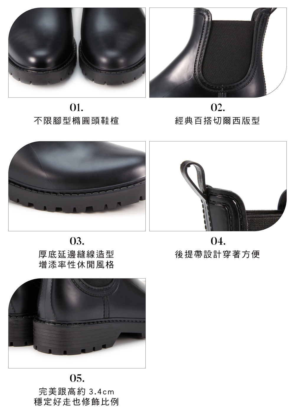※ 大底無100%防滑效果,雨天穿著時請小心留意