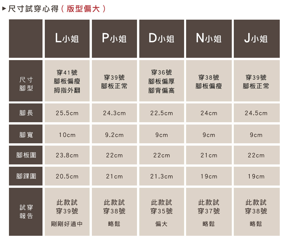 ※ 此鞋款版型偏大,建議挑選小一號較合適。