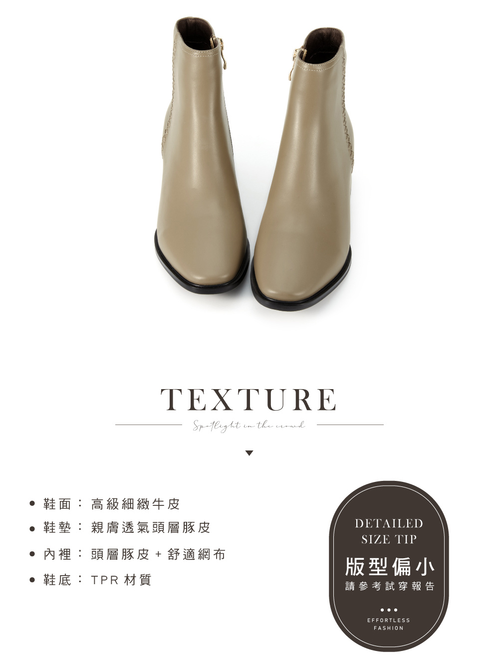 ※ 試穿時切勿硬塞、踮腳或拗折腳背,若造成無法復原之皺褶,恕無法接受退/換貨