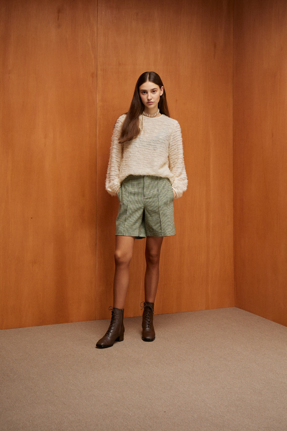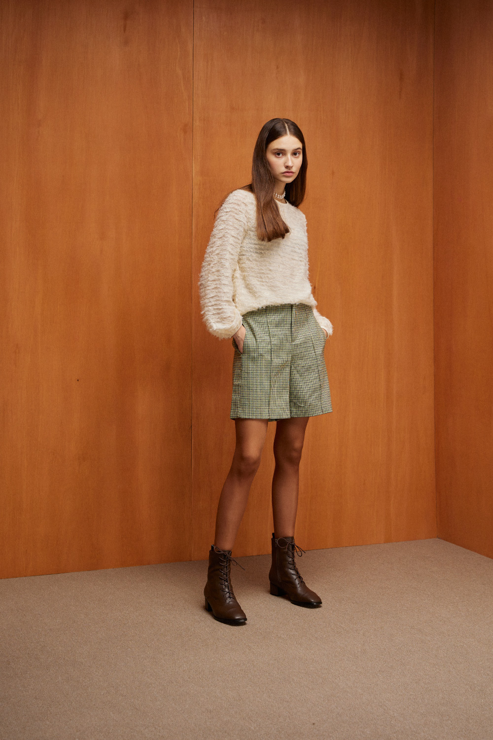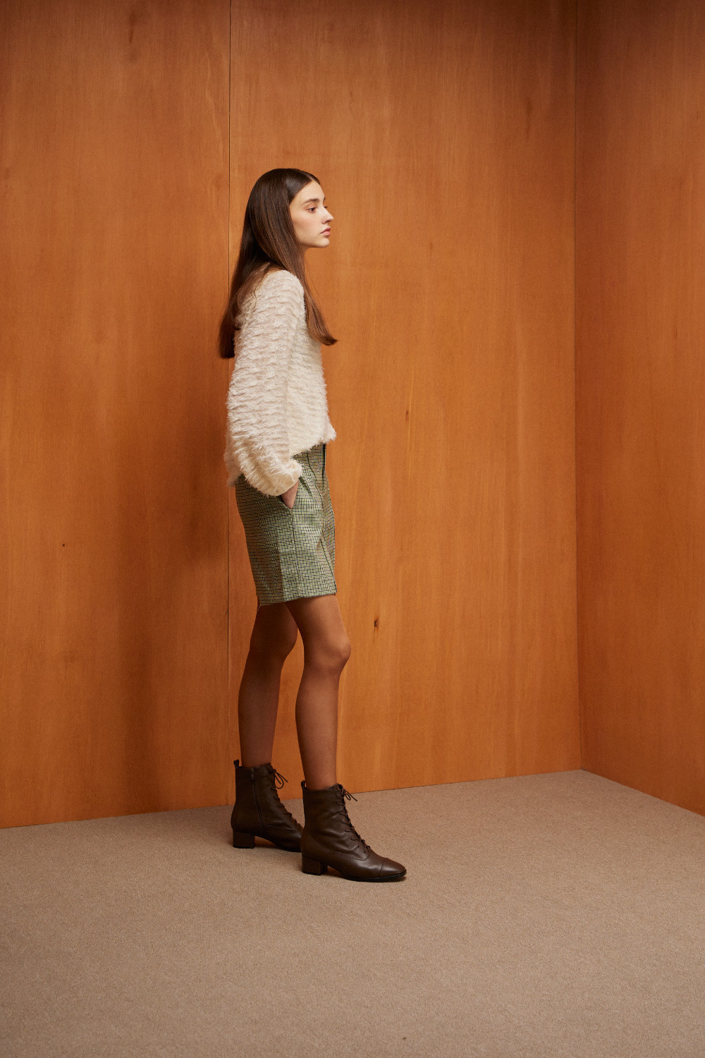 │同材質面料粗方跟,跟高約4.3cm,完美修飾身形比例
