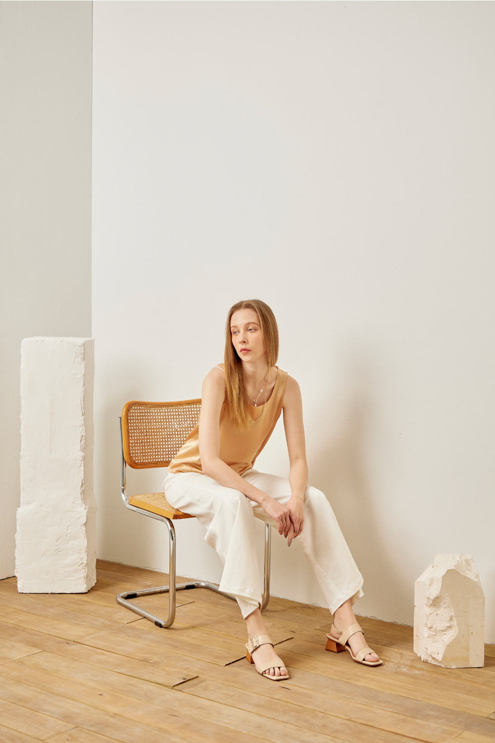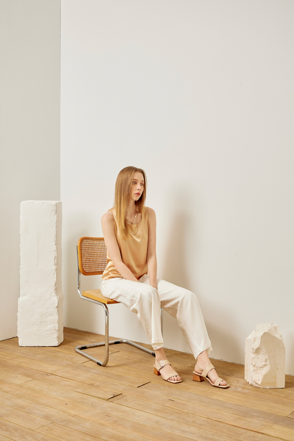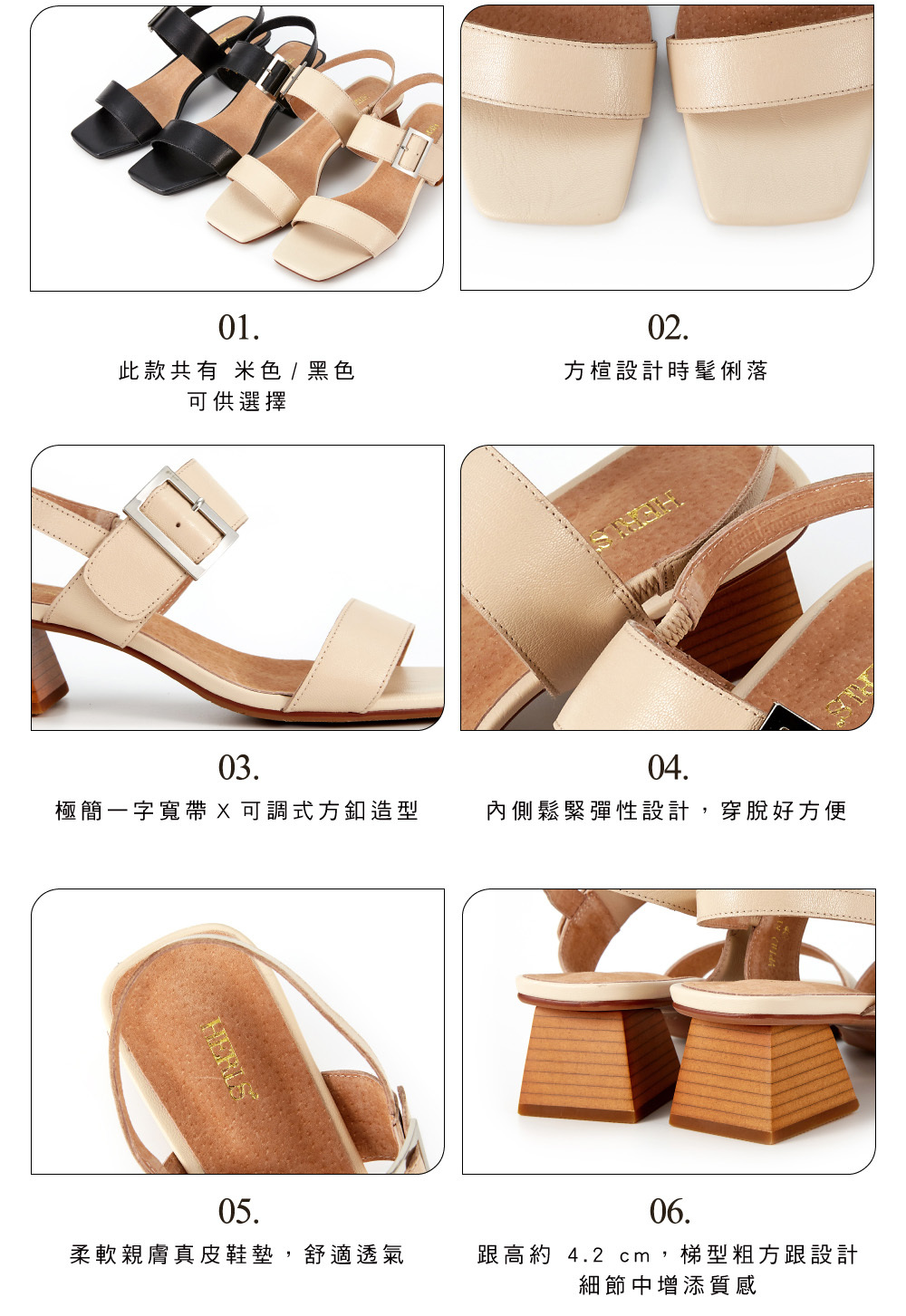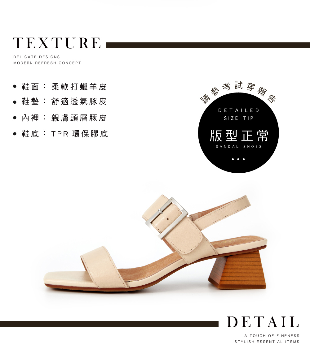 │跟高約 4.2 cm,梯型粗方跟設計,細節中增添質感